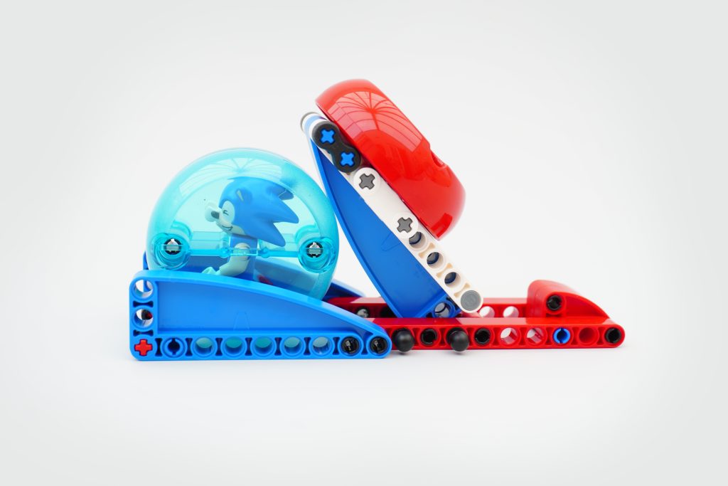 Der er andre Stuntz-elementer udstillet her, især ramperne, der hjælper Sonic på vej. Ak, hvis der er et svagt punkt ved dette sæt og Sonic-serien generelt, er det metoden til faktisk at forpligte sig til at løbe gennem niveauet. I stedet for push-along motorcyklerne fra de vigtigste Stuntz sæt har Sonics hamsterbold en løfteraket bygget af Technic dele – som, selvom de ser cool ud og helt på mærket (den er stylet efter en af de mange fjedre Sonic hopper rundt på i spillene), ikke føles særlig tilfredsstillende at bruge.