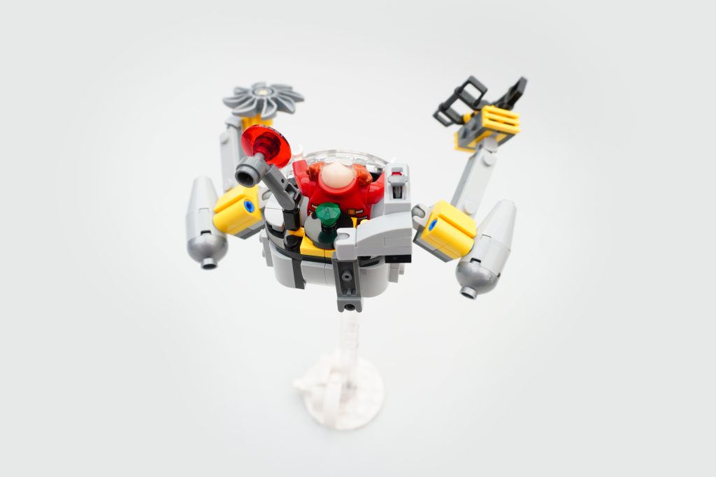 Robotnik's eggmobile mech er en absolut fornøjelse at sammensætte. Eggmans primære transportform kan enten klikkes ind i et par tykke ben (perfekte til at stemple på et bestemt blåt pindsvin) eller fastgøres til en gennemsigtig base for at tillade den at svæve truende i luften. Af de to former er rollatoren nok lidt sjovere, og bygningen er flot og robust på trods af, at den har mange bevægelige dele.