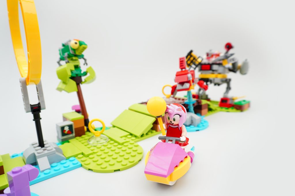 Til dette formål, mens 76994 Sonics Green Hill Zone Loop Challenge er endnu en version af de samme Sonic-vartegn, er den langt mere tilgængelig, både fra perspektivet om faktisk at sætte klodserne sammen, og med hensyn til dens tilgængelighed som et legeområde. Dette er et sæt, der er designet til at blive interageret med; der er knapper at trykke på, som vælter træer og vælter broer, der er skråninger, som Sonic kan løbe op af, og der er robotfjender, både store og små, der skal knuses.