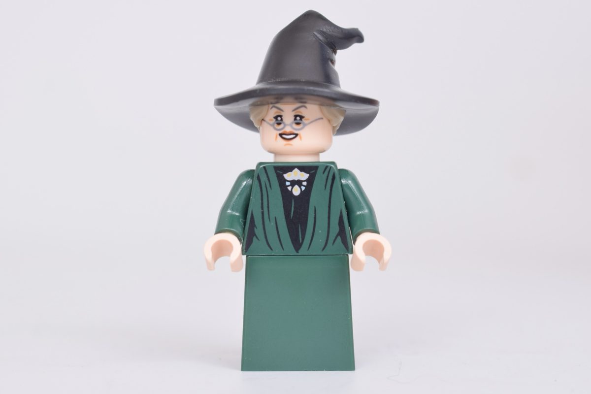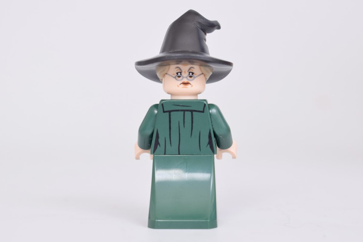 Professor McGonagall i 76460 Hogwarts Slot: Sorteringshatceremoni ser måske bekendt ud, da hun er næsten identisk med versionen i 76457 Hogsmeade Village Samlerudgave og 76447 Hogwarts Castle: FlyveundervisningHun er dog klædt ud til sorteringsceremonien med sin egen heksehat, hvor dele af hendes hår er synlige i kanterne.
