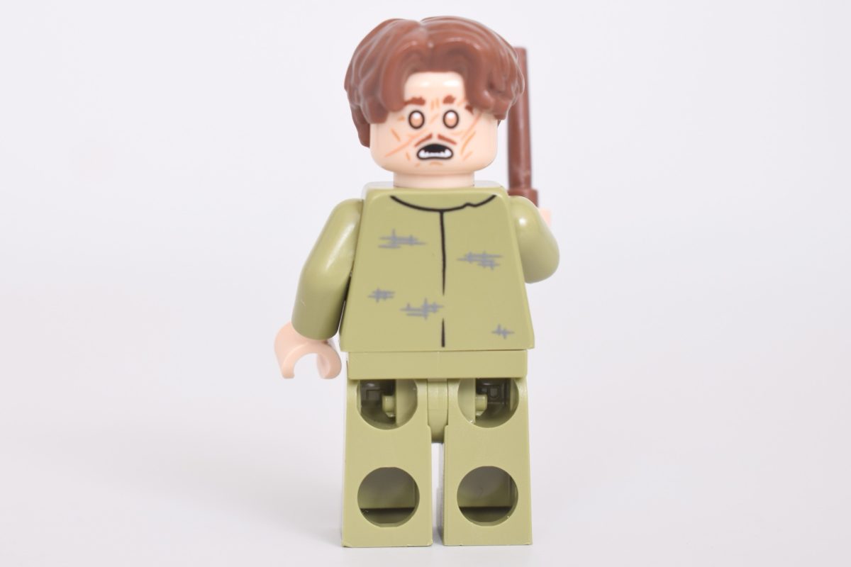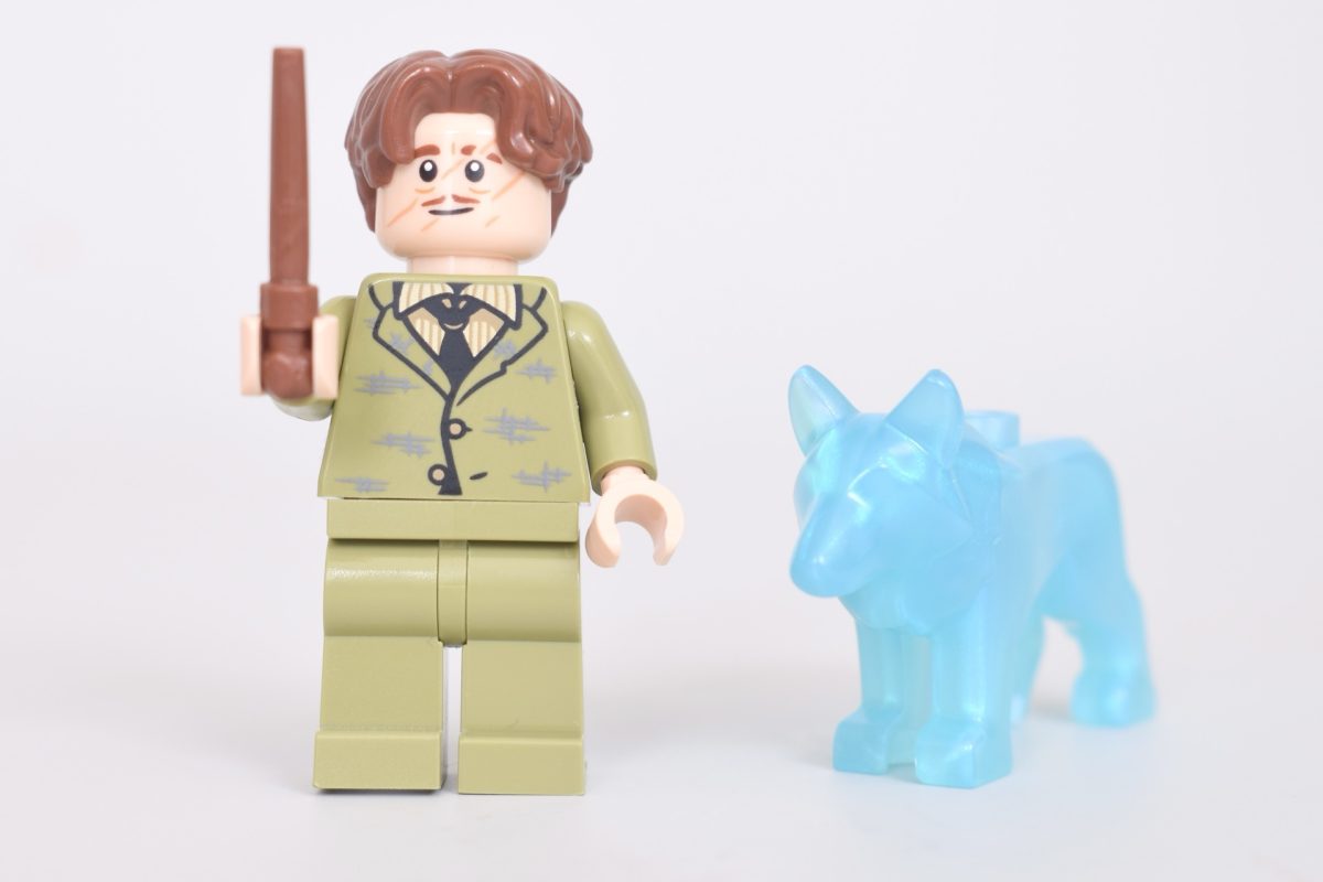 Professor Remus Lupin er ikke en ny karakter, men han er aldrig blevet set helt sådan her, iført en ny olivengrøn dragt med spredte tegn på slid på overkroppen. 76463 Hogwarts Slot: HospitalfløjenDe to ansigtsaftryk har også ar, et tegn på hans hårde liv som varulv, mens hans udyrlige side antydes med det sekundære aftryk med gyldne øjne og skarpe tænder, som om han er ved at forvandle sig.