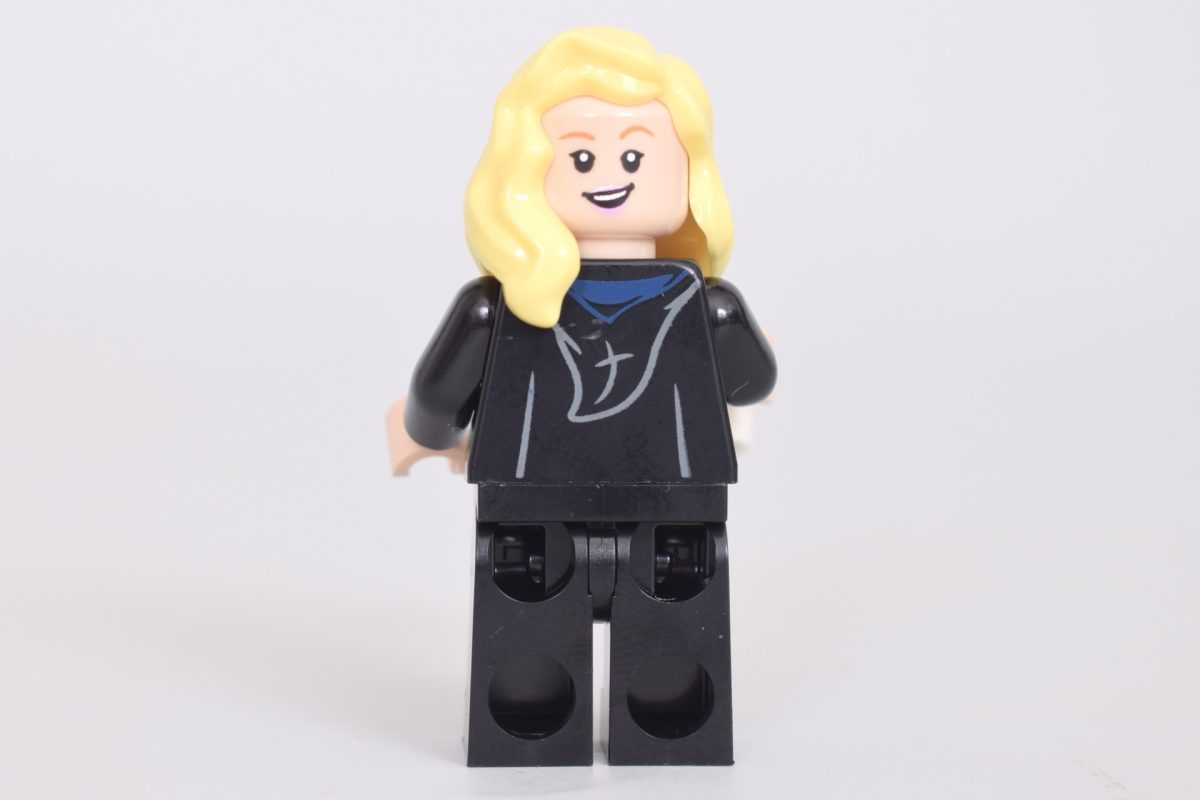Vi har set den Grå Dame før i 76413 Hogwarts: Behovsrum, men hun har fået en ret betydelig opgradering i løbet af de sidste par år. Det grå tryk, der er brugt overalt, er meget lysere, hvilket giver hende et mere æterisk, passende spøgelsesagtigt udseende, og der er meget mere detaljeret tryk på hendes kåber, især nederdelen.
