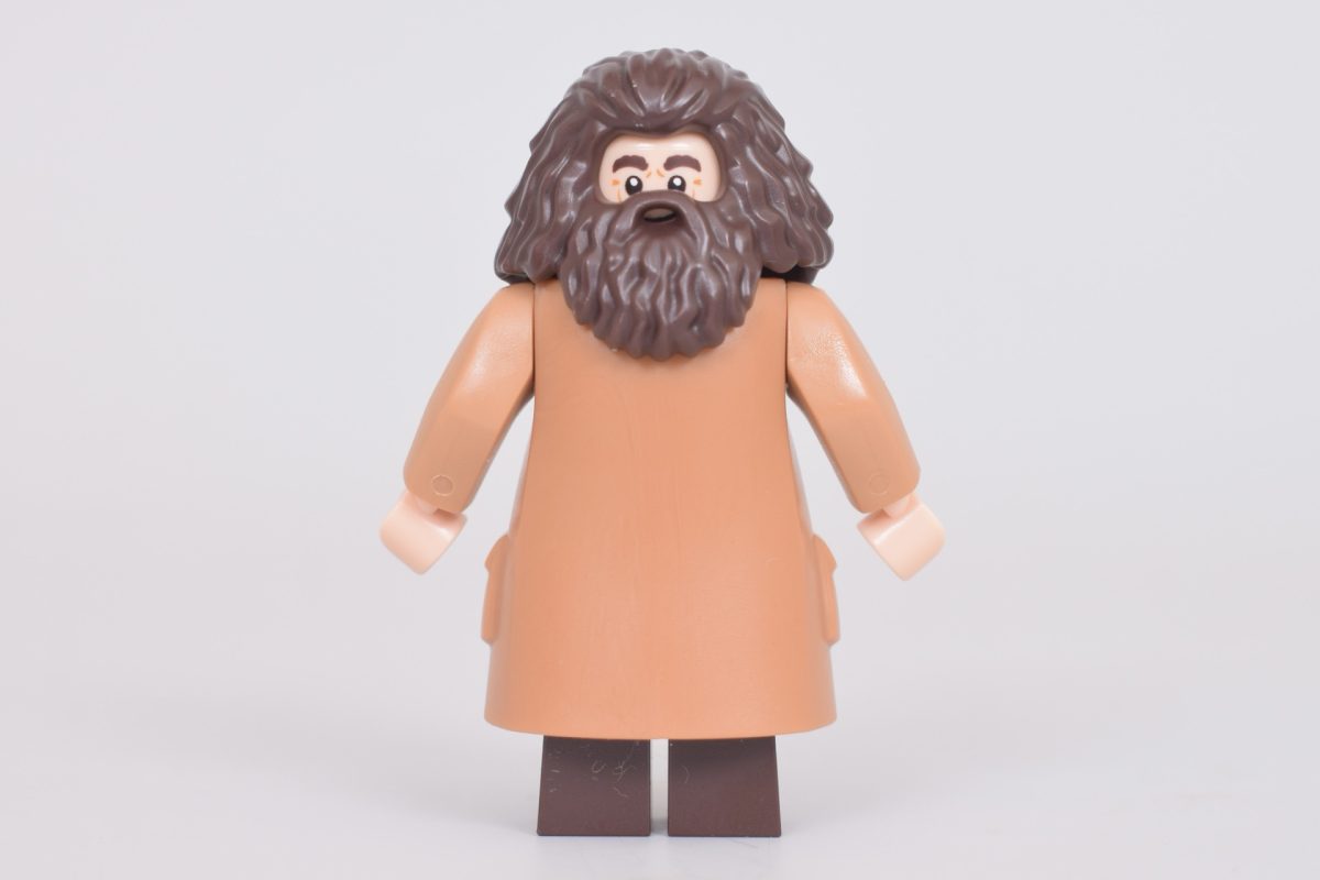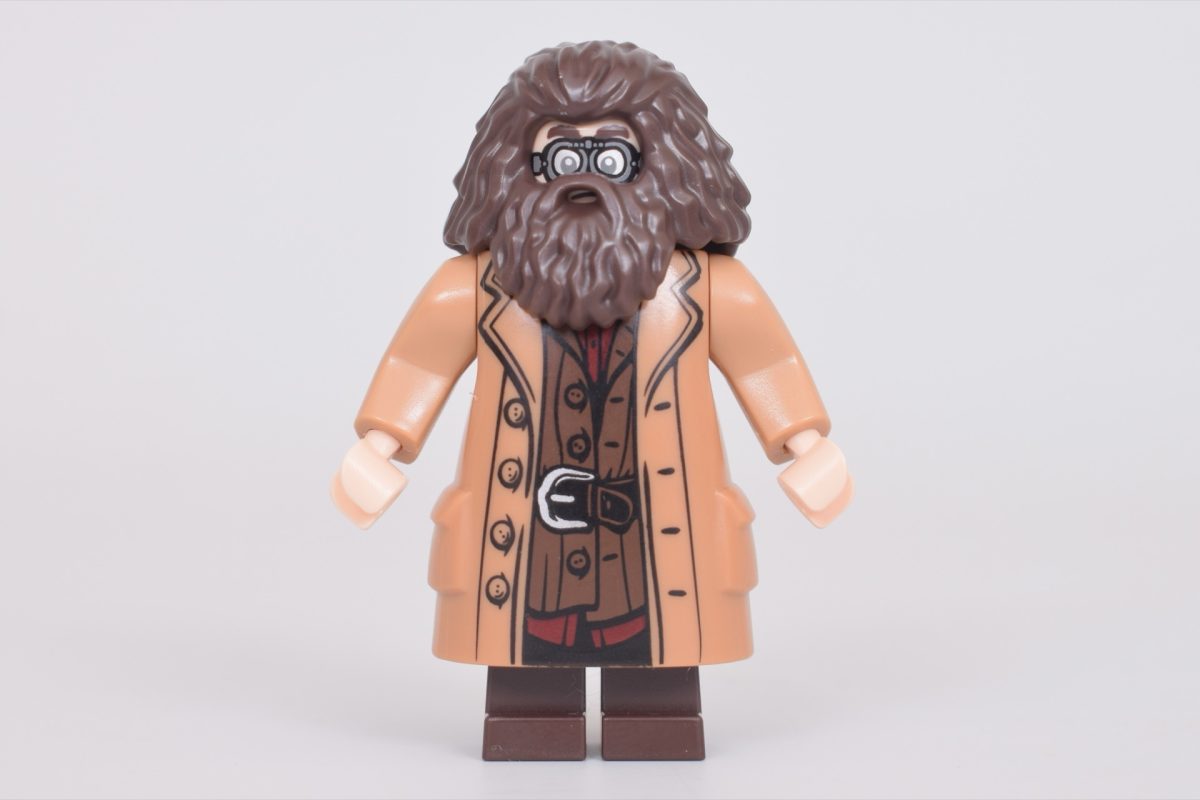 Selvom Hagrids karakteristiske frakke-kropselement er set før, er dette ansigtstryk med beskyttelsesbriller nyt for halvkæmpen. Hans buskede øjenbryn kan stadig ses ovenpå, men han er ellers beskyttet mod vinden under sin vilde tur på en motorcykel i 76459 Hagrid & Harrys flugt fra Ligustervejen.