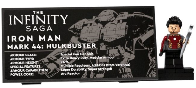 Mens minifiguren i 76105 The Hulkbuster: Ultron-udgaven var eksklusiv, ligner den en anden Mark 43-minifigur i tre andre Age of Ultron-sæt. Minifiguren i 76210 Hulkbuster er i en lignende situation, der har et par små forskelle til Tony Stark minifiguren fundet i en tidligere salgsfremmende build, hvilket gør den potentielt mere ønskværdig for dem, der ikke ejer 40334 Avengers Tower.
