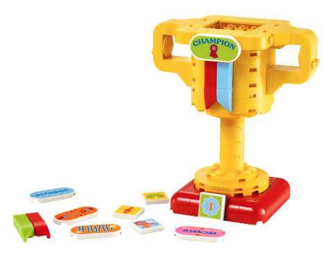 40688 Trofæpris ser ud til at have samme overordnede design som 2020's 40385 Trophy, da rygter, med den kommende gule kop med et murstensbygget vinderbånd, et rødt stativ og en række aftagelige klistermærker.