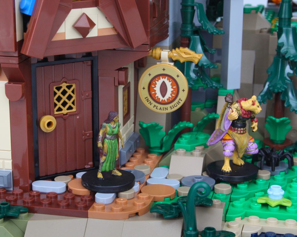 Mens 21348 Dungeons & Dragons: Red Dragon's Tale er designet til minifigurer, er vi blevet overrasket over, hvor godt alt (bortset fra ydersiden af værtshuset) også er skaleret til officielle D&D-miniaturer. Sættet viser sig at være mangfoldigt nok til begge typer fantasifigurer, og i nogle aspekter fungerer miniaturerne bedre end minifigurer.