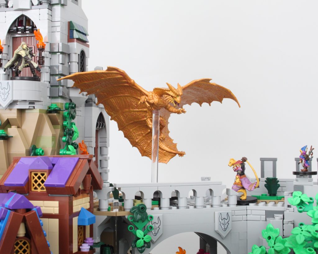 Der er ingen tvivl om, at LEGO Ideas 21348 Dungeons & Dragons: Red Dragon's Tale er beregnet til at blive brugt med enten de officielle minifigurer eller andre minifigurer, som du har ved hånden. Da sættet har et tilknyttet eventyr, kan du bruge modellen som en repræsentation af verden for dens kampe, og dens figurer og minifigurer matcher også eventyret.