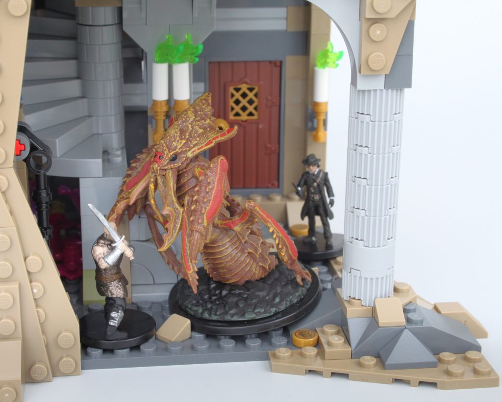 Heldigvis for dem, der sigter efter at bruge denne model uden for det officielle eventyr til både fremvisning og leg eller i dine tilpassede kampagner, har D&D en række miniaturefigurer, der skalerer overraskende anstændigt med LEGO Ideas sæt. Når vi graver i vores samling af officielle miniaturer, har vi undersøgt muligheden for at bruge 21348 Dungeons & Dragons: Red Dragon's Tale i display og leg, ved hjælp af både minifigurer og miniaturer.