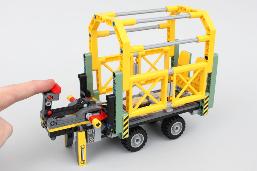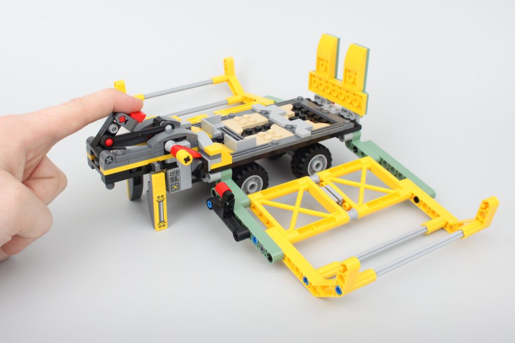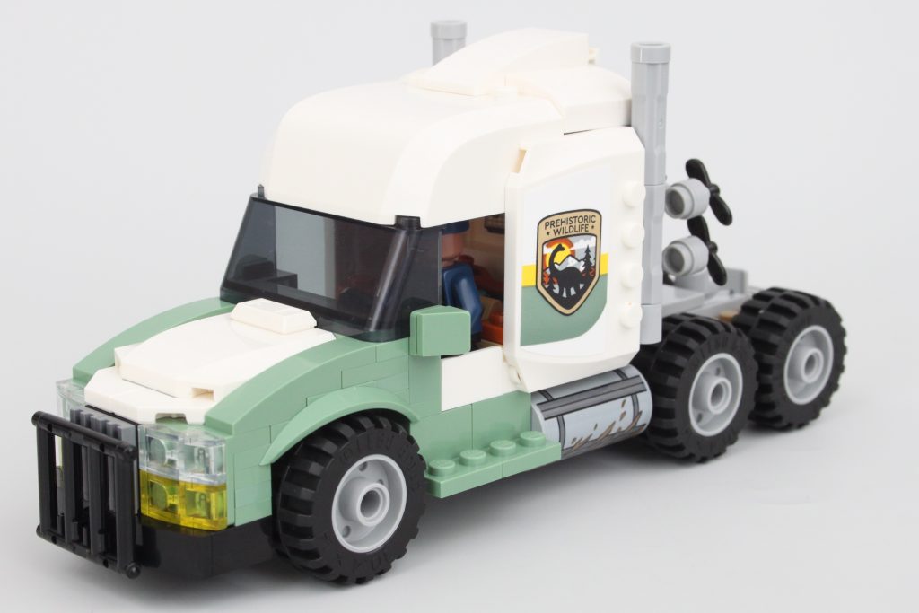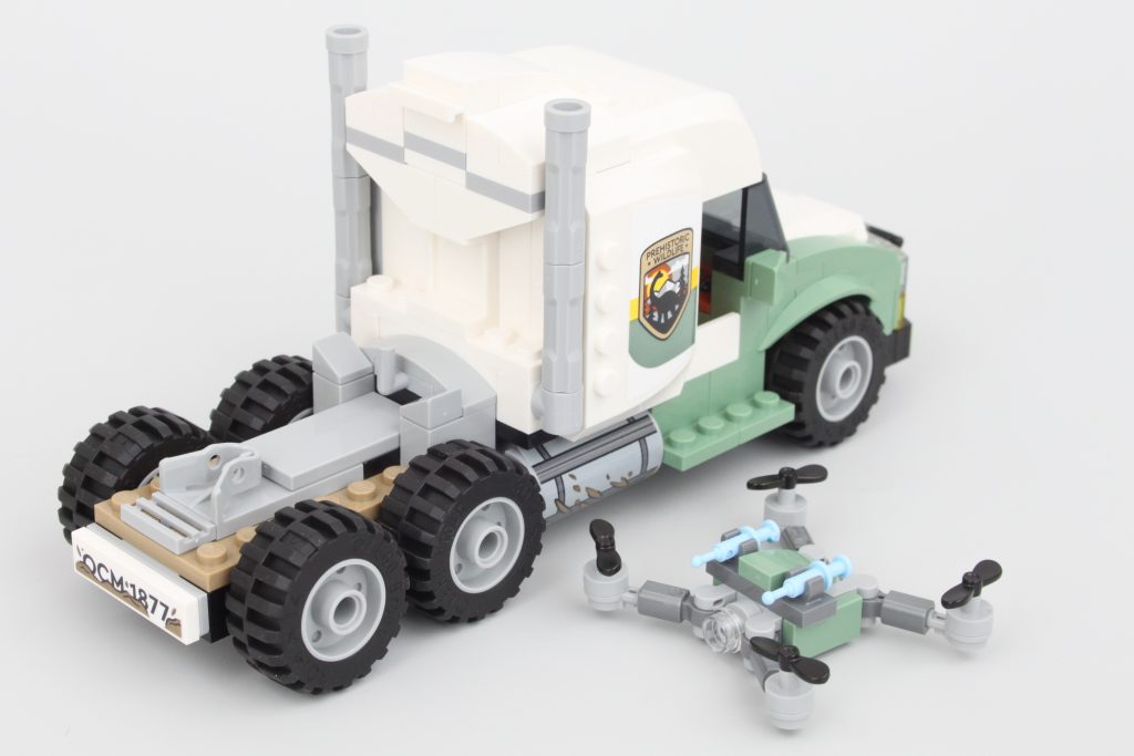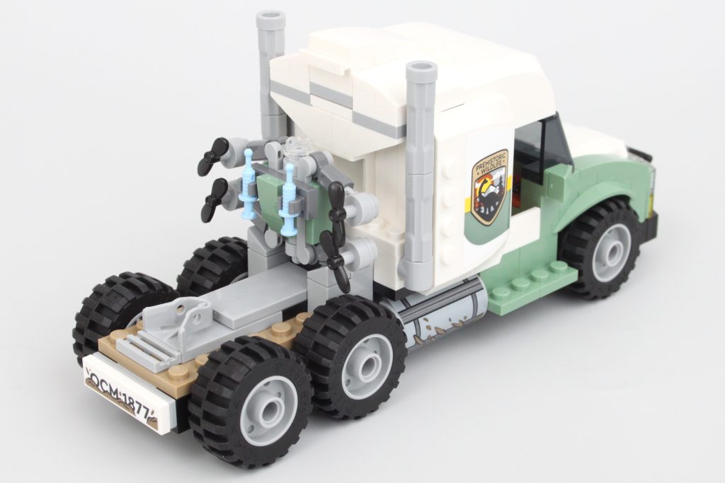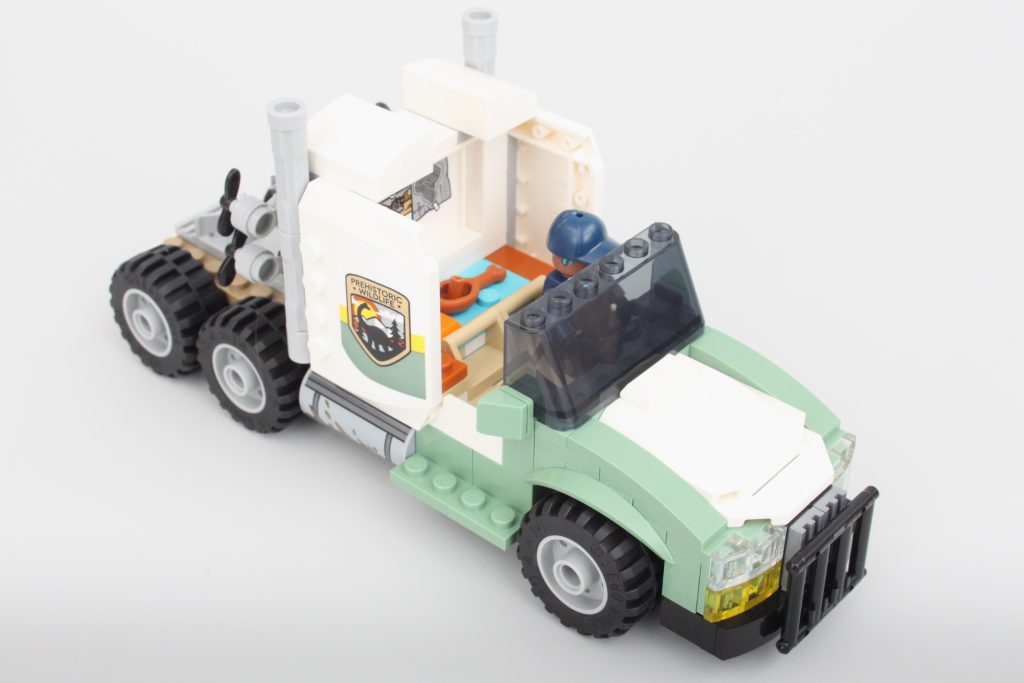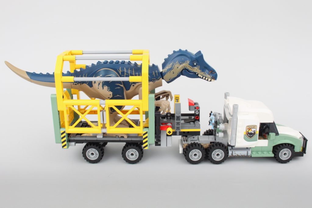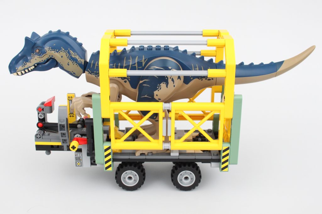 Sættets vigtigste spillefunktion er indeholdt i denne trailer. Siderne af transporten kan komme klaprende ned med et tryk på en håndtag - sandsynligvis et resultat af, at Allosaurus bryder ud. Funktionen fungerer godt og er nem at nulstille, men ikke nem at udløse ved et uheld – en værdsat berøring.
