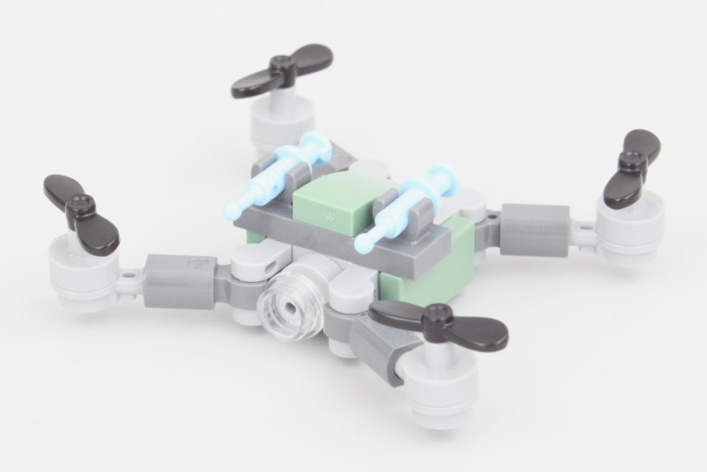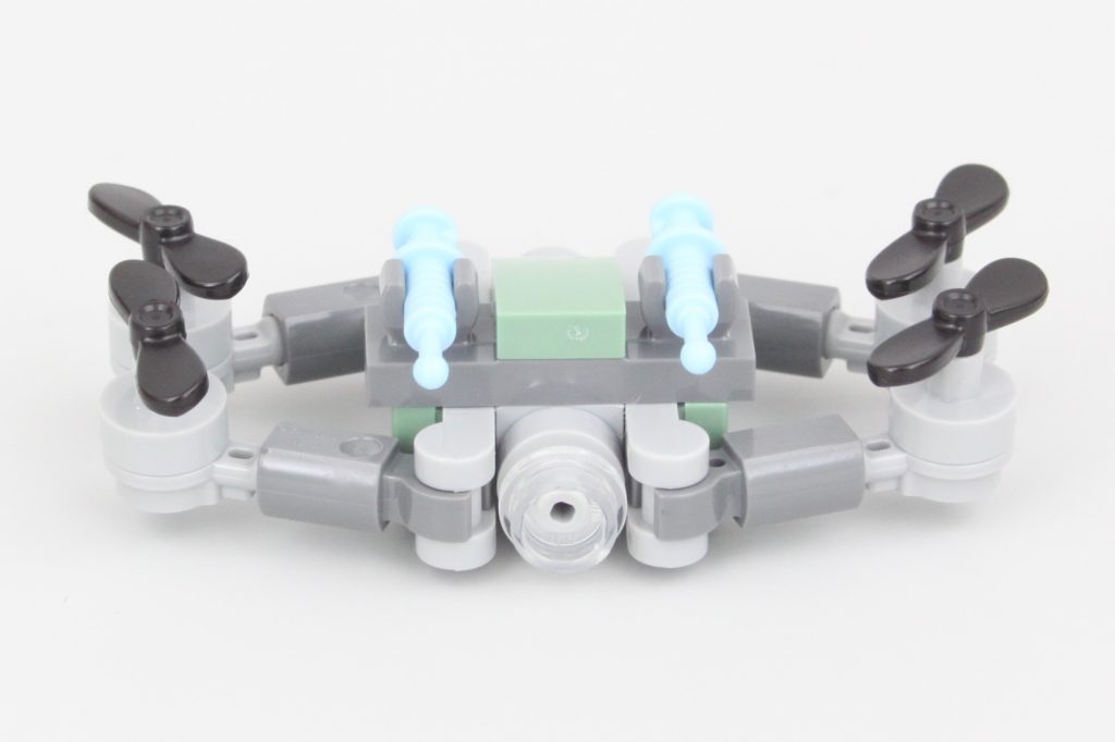 Den lille drone er meget mere interessant, idet den vælger et design, der ser ud til at være nyt, men som tager lektioner fra forskellige andre LEGO-droner fra LEGO Collectible minifigurer serie og LEGO Jurassic World.