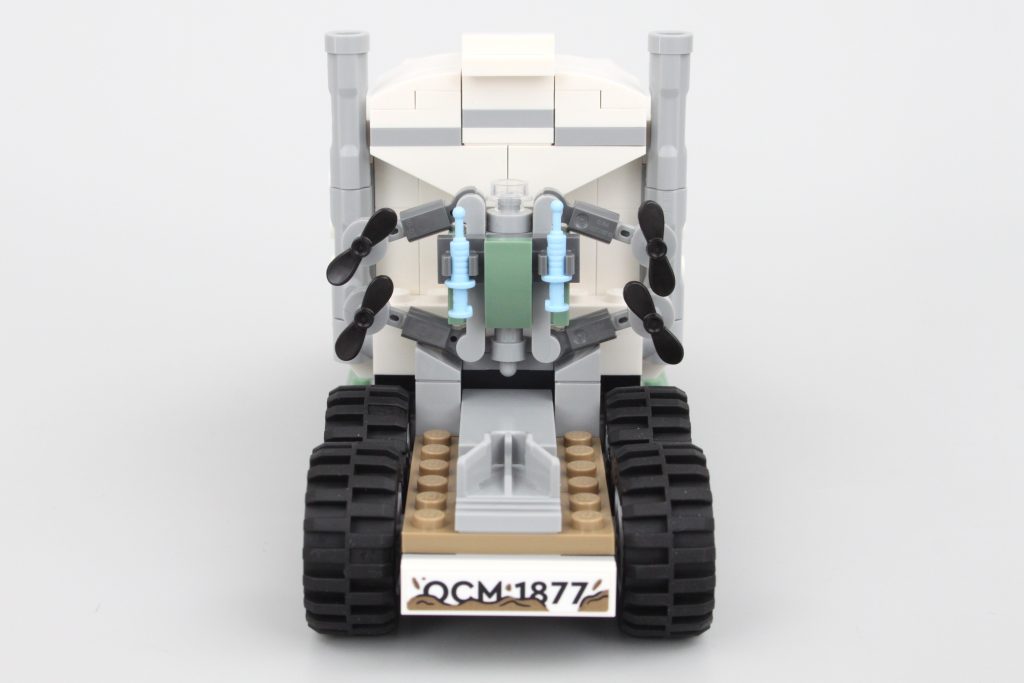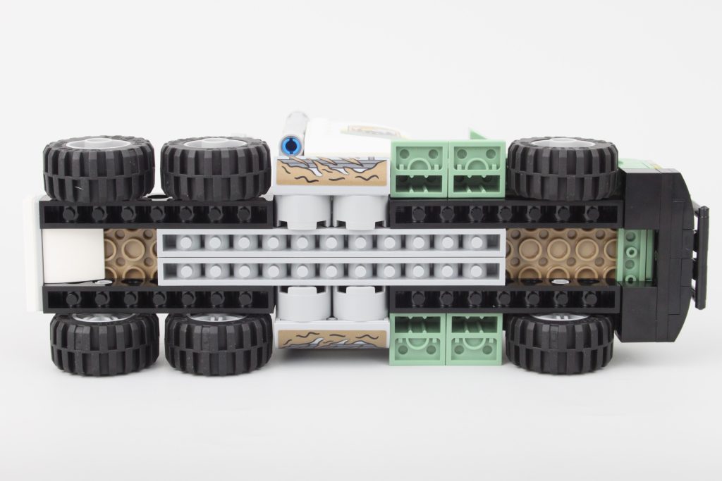 Designet af dette køretøj er ikke noget nyt, men forskellige sæt har bevist, at dette design er funktionelt, spilbart og visuelt tiltalende, og den mintgrønne farve fungerer også særdeles godt. Der er plads til to minifigurer, selvom rytteren på ryggen ikke er for sikker.