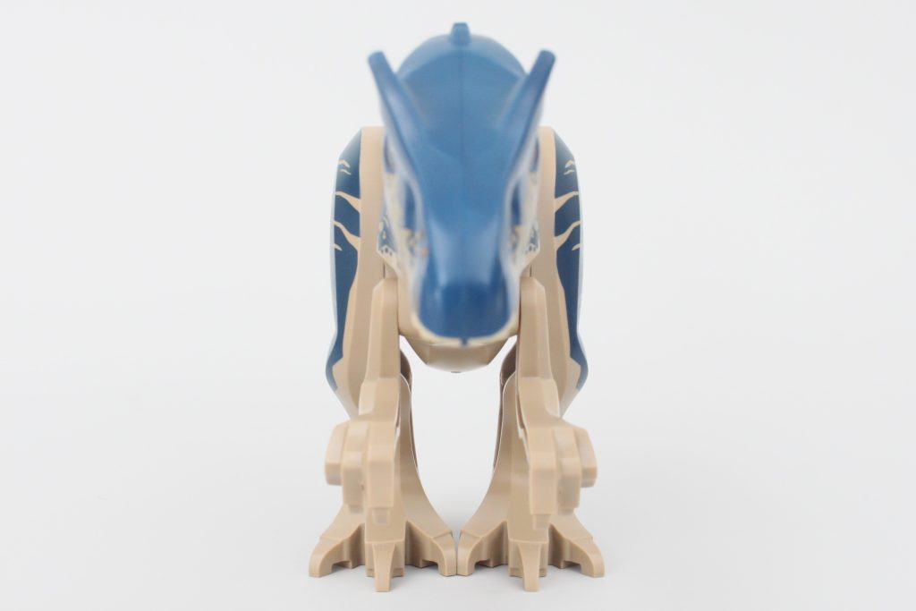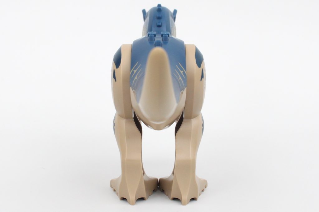 Alligevel er detaljeringsgraden i farveskemaet på LEGO Allosaurus utroligt tiltalende, med tegn på kampskader og ar, der passer godt sammen med formen på det nye hovedelement. Selvom den genbruger Indominous Rex's krop, ben og arme, er LEGO Allosaurus succesfuld, hvor den skal være, og den har en passende størrelse i betragtning af sættets pris.