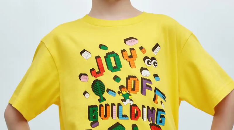 Samlingen af fire T-shirts har forskellige variationer af LEGO-tema-print, inklusive en dækket af farverige LEGO-klodser på en hvid. baggrund. To mere har lignende design parret med to slogans: 'LEGO Play' og 'Endless Imagination'. Den fjerde og sidste skjorte er et mere dynamisk mønster, hvor klodser eksploderer ud af budskabet: 'Joy of Building'.