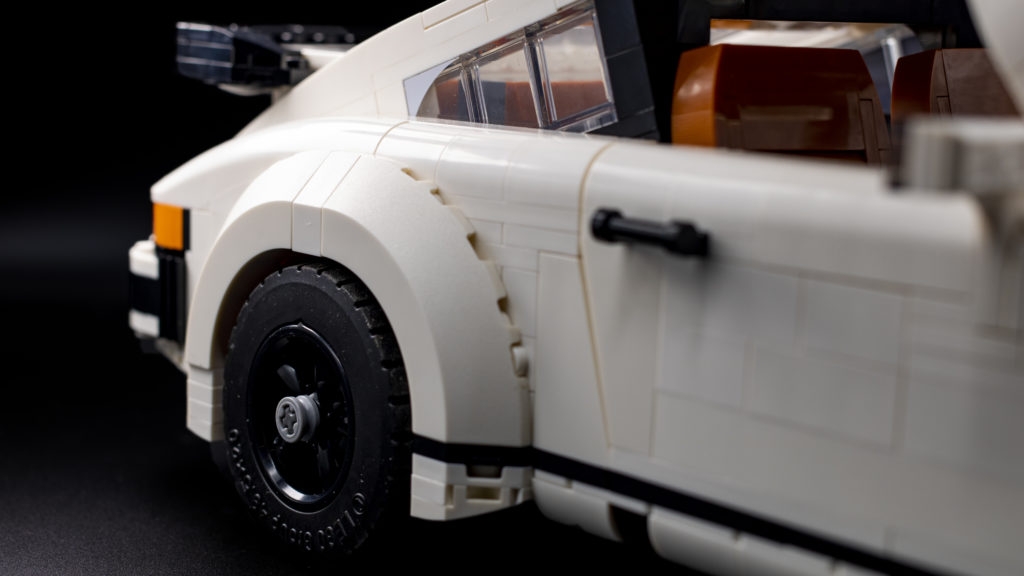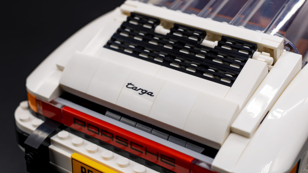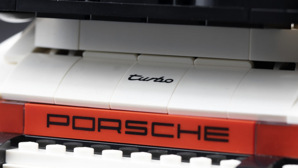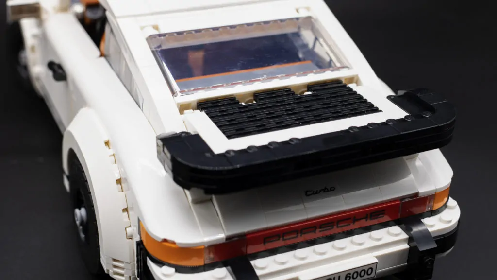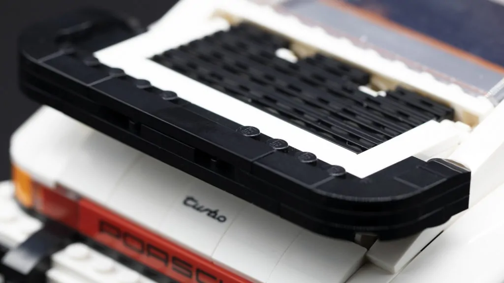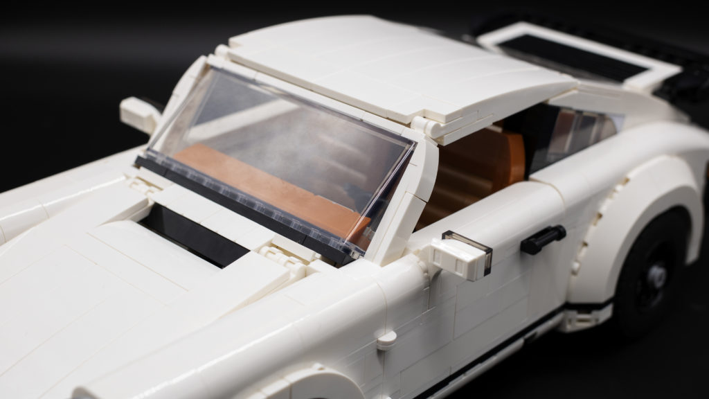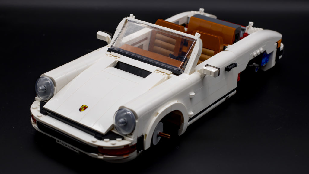 Efter det ret lige arbejde med at konstruere rammen er det til fornøjelsen at langsomt opbygge karrosseriet og indvendige detaljer, hvoraf de fleste består af et antal smarte underenheder, der passer sammen på åh så tilfredsstillende måder. En genial brug af den 2 × 4 buede flise hjælper med at forbinde rammen med den bageste vinklede tagdel. 1 × 1 runde fliser med pinholdere er forbundet til toppen af Technic mursten, der vender bygningsretningen, hvilket gør det muligt for eksponerede studs at forbinde til baghjulbuerne (Turbo og Targa har forskellige hjulbuer, så dette afsnit skal let kunne skiftes).