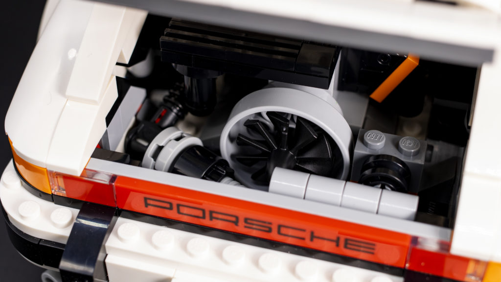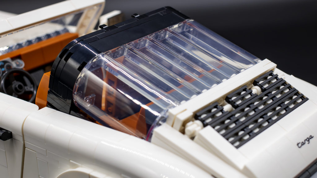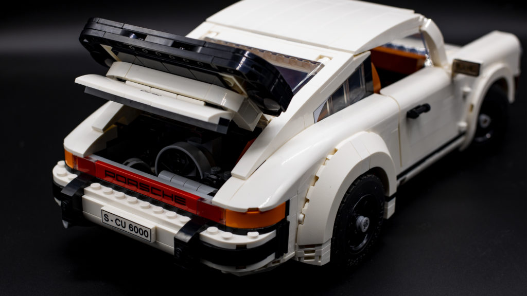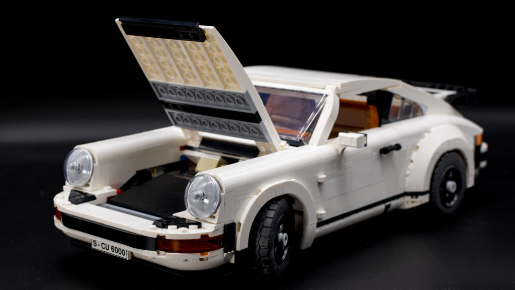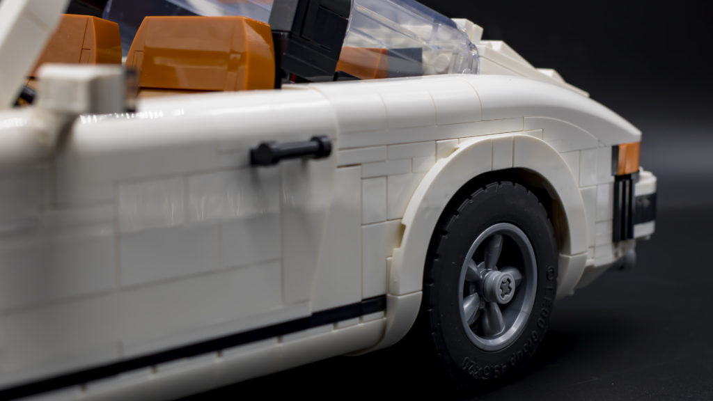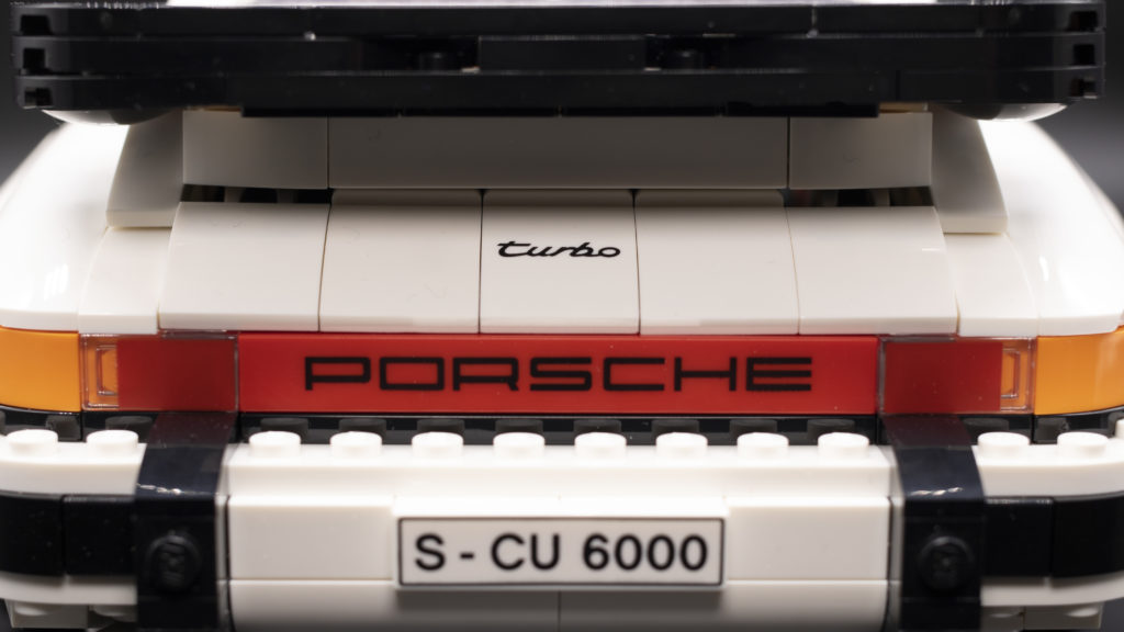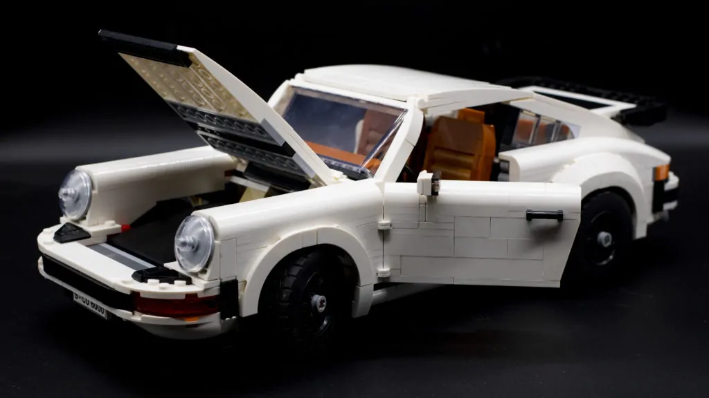 Efter det ret lige arbejde med at konstruere rammen er det til fornøjelsen at langsomt opbygge karrosseriet og indvendige detaljer, hvoraf de fleste består af et antal smarte underenheder, der passer sammen på åh så tilfredsstillende måder. En genial brug af den 2 × 4 buede flise hjælper med at forbinde rammen med den bageste vinklede tagdel. 1 × 1 runde fliser med pinholdere er forbundet til toppen af Technic mursten, der vender bygningsretningen, hvilket gør det muligt for eksponerede studs at forbinde til baghjulbuerne (Turbo og Targa har forskellige hjulbuer, så dette afsnit skal let kunne skiftes).