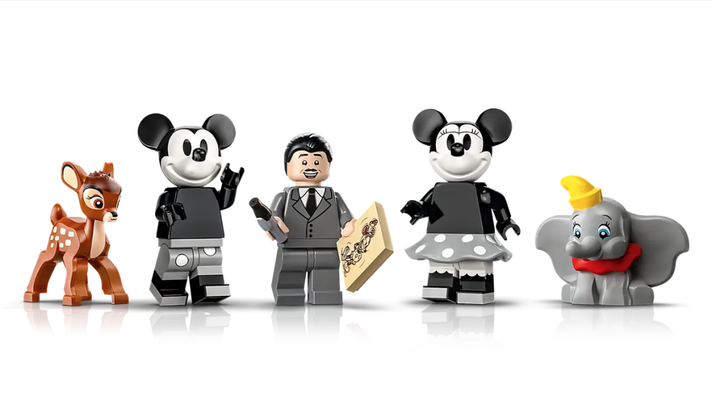 Den kommende Disney 100-modellen leveres også med en filmstrimmel af cellulose, der indeholder LEGO-versioner af 20 historiske animerede film, samt tre printede skærme til at fastgøre til et multi-panel-kamera bygget på klapbrættet, der afslører, hvordan Disney's The Old Mill kort blev lavet.