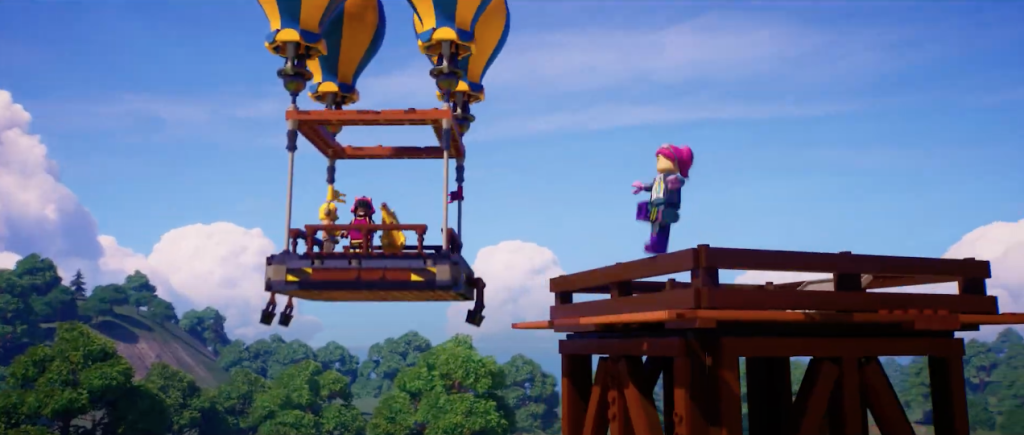 Vi kommer også til at se en blomstrende LEGO-by, komplet med adskillige minifigurer, der kunne foreslå potentielle multiplayer-muligheder, og et ballonfartøj, der minder om Fortnites Battle Bus, der kan være en praktisk form for in-game transport i hele ømiljøet.