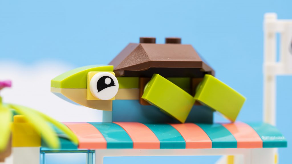 Alt i alt er det en ret ligetil, men alligevel fornøjelig konstruktion. Hvad der dog kommer som en overraskelse er den vidunderlige lille skildpaddefacade, der sidder på toppen. Lavet af en håndfuld 1×2 kurver og omvendte kurver, er formen og udseendet af en havskildpadde vidunderligt fanget. Det er en fantastisk tilføjelse, der tilføjer så meget til det endelige design.