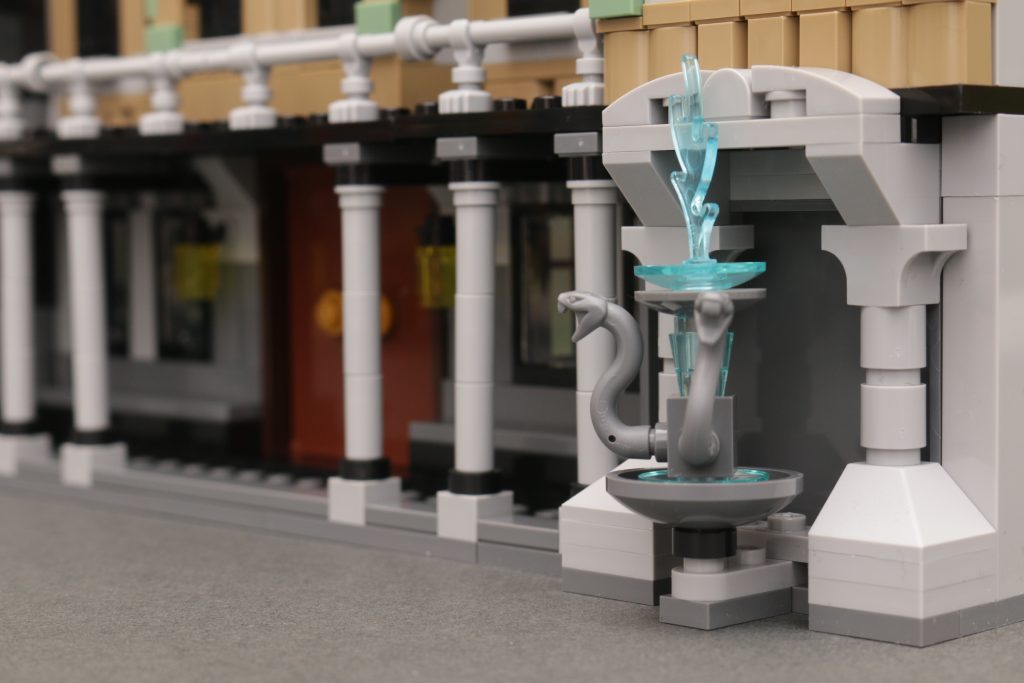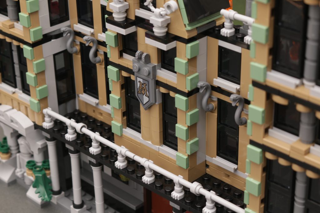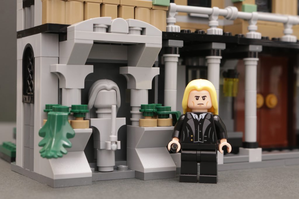 Og når du vender det om, hvorfor det ikke giver god mening – en facade skal være for at give mulighed for at bygge mod en indvendig legeoplevelse, eller noget uventet cool som 76408 12 Grimmauld Place tilbydes, men intet af det er tilfældet for 76453 Malfoy Manor så meget som det kunne eller burde være. Der er faktisk dejlige detaljer indbygget i trange rum overalt - ikke en af de 1,601 stykker er blevet spildt i den henseende - men alt er bygget ind i trange rum, fordi de 1,601 stykker bliver bedt om at bygge noget, der uden tvivl skal bruge 2,500 til 3,500 stykker for virkelig at lykkes i begge retninger.
