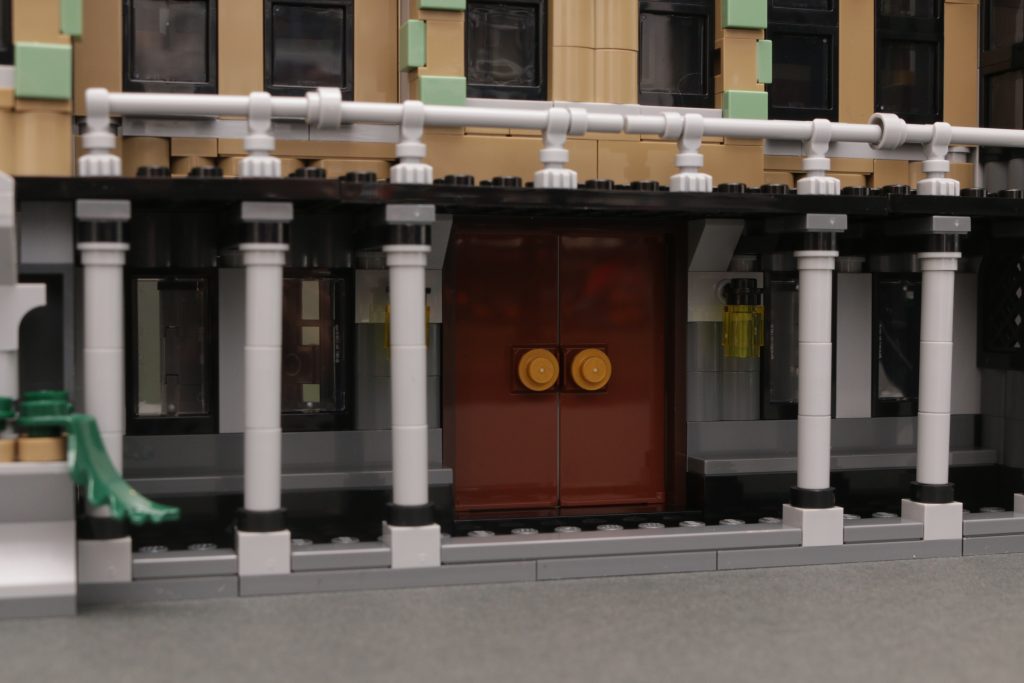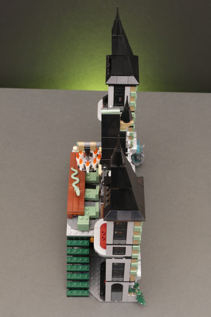 Nå, det ydre på modellen ser fremragende ud og bygger virkelig op på stedets større karakter, såvel som dens mørkere, dystre undertoner (selvom brugen af grøn på tværs af fascien er lidt for udbredt). Porten er en flot inklusion og et nik til dens særlige fortryllelser, og sammen med modellens rene højde skaber den virkelig den følelse af varsel, der skyder over enhver, der nærmer sig hoveddørene.