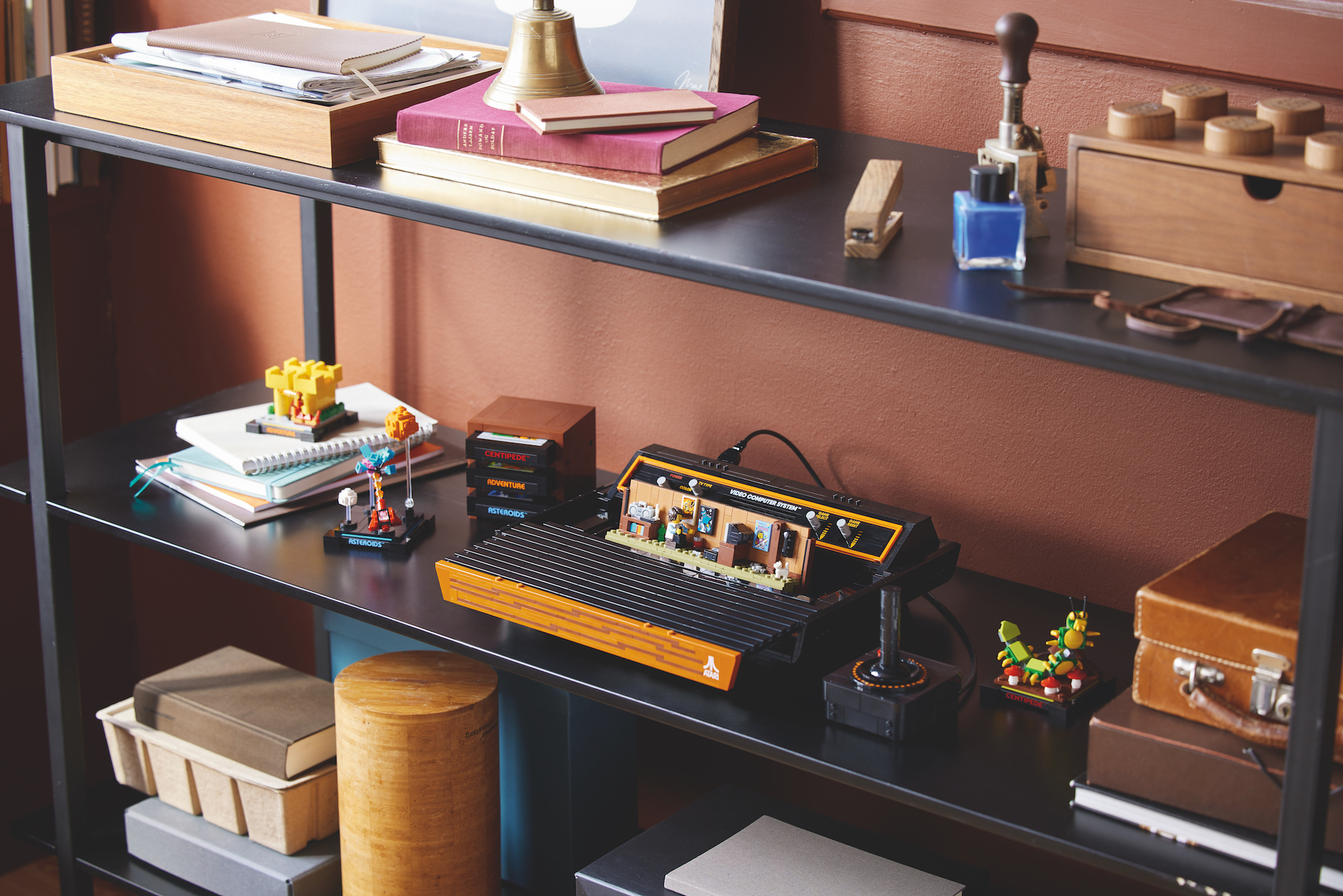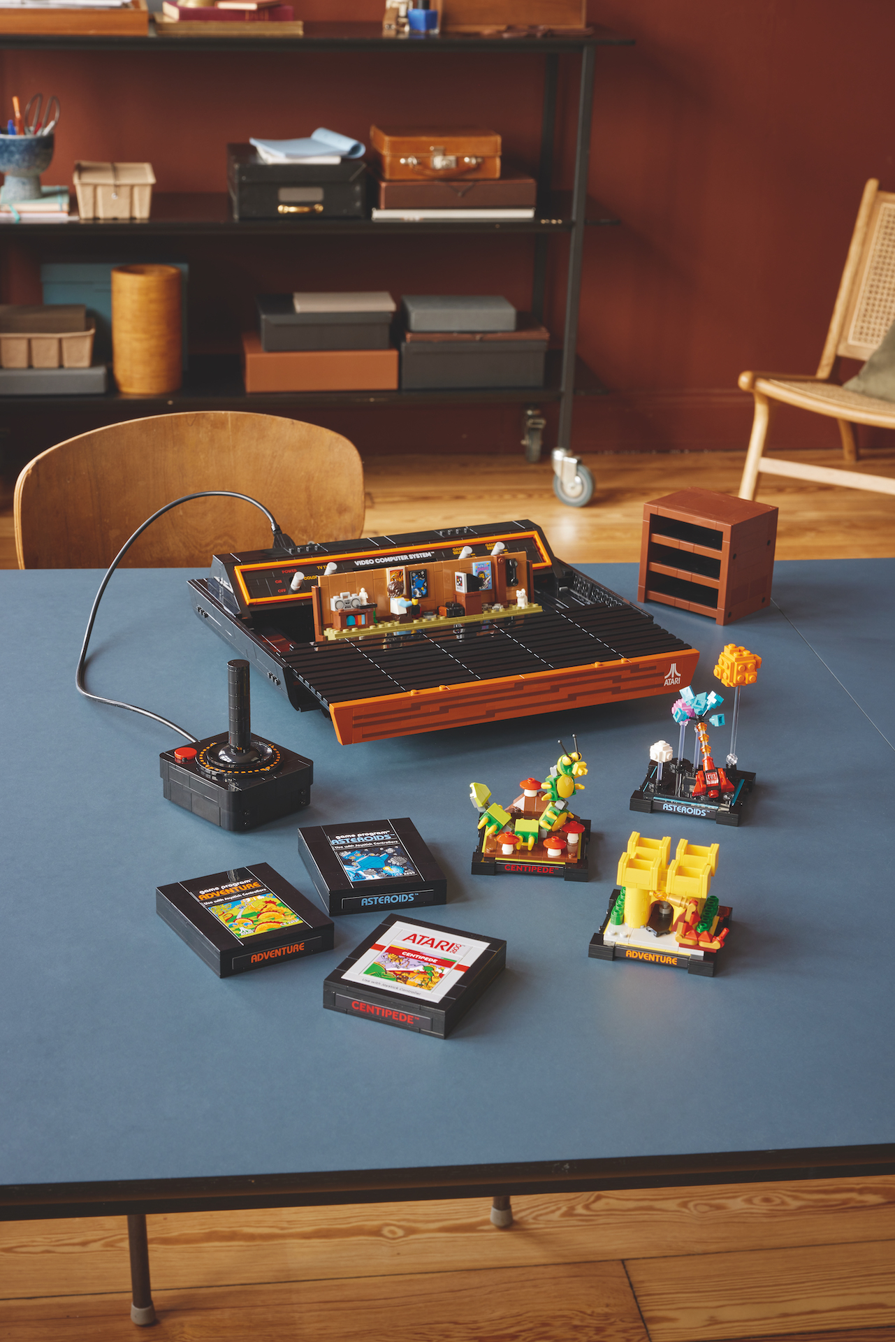 Vi siger næsten, for sammen med en Atari 2600, joystick og tre patroner – en hver til Asteroids, Adventure og Centipede – indeholder sættet også elementer til at bygge tre små bygbare dioramaer af dets spil, og inde i selve konsollen er der en minifigur. skala diorama af en 80'er stue (bare ikke spørg, hvornår Johnny Thunder debuterede).