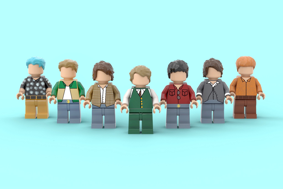 De syv BTS-medlemsminifigurer i sættet får også et boost i detaljer, hvor de originale versioner med blank ansigt nu er erstattet med mere nøjagtige ligheder af RM, Jin, SUGA, j-hope, Jimin, V og Jung Kook. Minifigurerne af den sydkoreanske pop ikoner formår også at afspejle udseendet af bandets tøj og frisurer i mindst én scene fra musikvideoen, hvilket giver fans mulighed for selv at genskabe øjeblikket, hvis de ønsker det. Derudover har begge sider af hver superstjernes ansigt et forskelligt trykt udtryk for endnu flere visningsmuligheder.