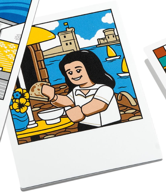 Det sidste billede vil sandsynligvis være ukendt for de fleste, da dette billede bekræftes at være af fandesigneren Minibrick Productions' søster, der inspirerede kreationen, der blev til LEGO. Ideas sæt. An Interview med fandesigneren fra The Verge giver mere indsigt i dette påskeæg, hvilket bekræfter by i baggrunden som La Rochelle i Frankrig. Denne hyldest er inkluderet, da søsteren inspirerede fandesigneren til at genskabe et polaroid-kamera af LEGO, da hun selv brugte et.