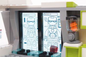 Den anden mere subtile design ulempe ved 76125 Iron Man Armor Hall står i klistermærkerne på skærmene ved Tonys skrivebord. Som de er på billeder, ser de ud i det virkelige liv - svære at læse. Det er nemt bare at sige, at sorte detaljer ville have været bedre, men det er endnu mere, når man overvejer jakkesættets baggrunde. Fremragende designet, stilistisk passer de perfekt til dragtskærmene i 76007 Iron Man: Malibu Mansion Attack, bortset fra det faktum, at dem fra 2013-sættet er tegnet i sort, ikke hvid. Hvad der kunne have været en perfekt sæt crossover, må vente.
