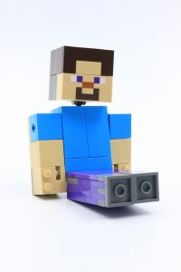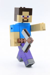 En ny trykt 2×4-flise genskaber perfekt karakterens pixelfunktioner og giver hovedet masser af blokeret LEGO charme. Det bedste nye element må være Minecraft pick-axe, som ser identisk ud med den i spillet og med 22 knopper nemt kan tilpasses. Fans vil helt sikkert håbe på andre farver i fremtiden, såsom perle-guld, for at opgradere karakteren som set i spillet.