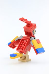For enhver fan, der har bygget en BrickHeadz model, så vil denne konstruktion føles ret bekendt, dog uden de stiliserede proportioner. Torsoen bygges først på en 4×4 rammeplade, med fire kugleled tilføjet til benene. Mørke azurblå fliser afslutter t-shirten, og de fleste af disse stykker er ualmindelige i denne farve.