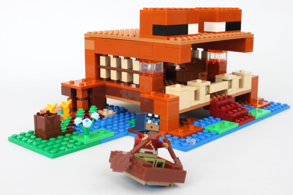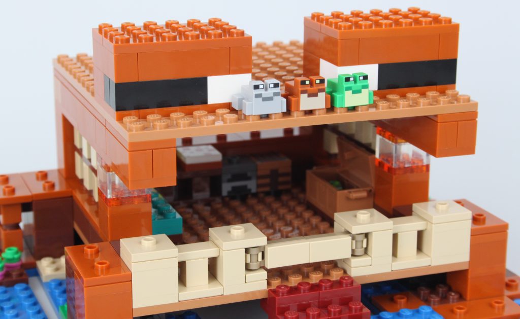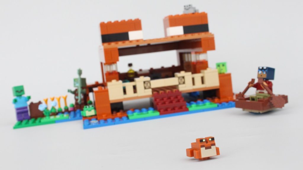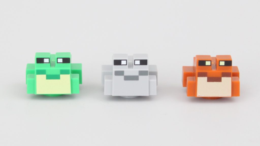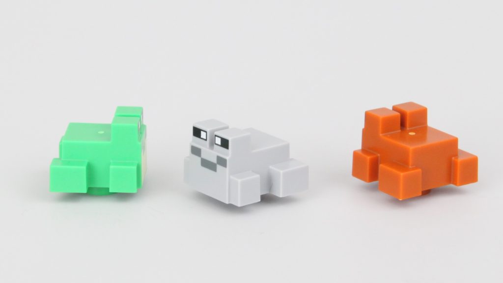 Ulige forsvar til side, 21256 Frøhuset's hovedmodel ligner nok Minecraft-væsenet af samme navn, og tre forskellige frøer er inkluderet til sammenligning, inklusive en helt eksklusiv variant.