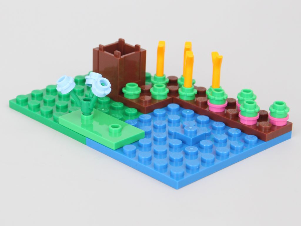 Uden et sådant træ er det udvendige rum omkring hjemmet for lille med knap nok plads til at posere minifigurer. Der er en lille gård, der kan sprække pænt ved siden af frøhuset. Dette afsnit er dog tilsvarende lille, og det kan ikke undgå at virke som en eftertanke. Heldigvis er huset i sig selv fokus for sættet og er næsten tilstrækkeligt nok til at overvinde manglerne i det udendørs rum.