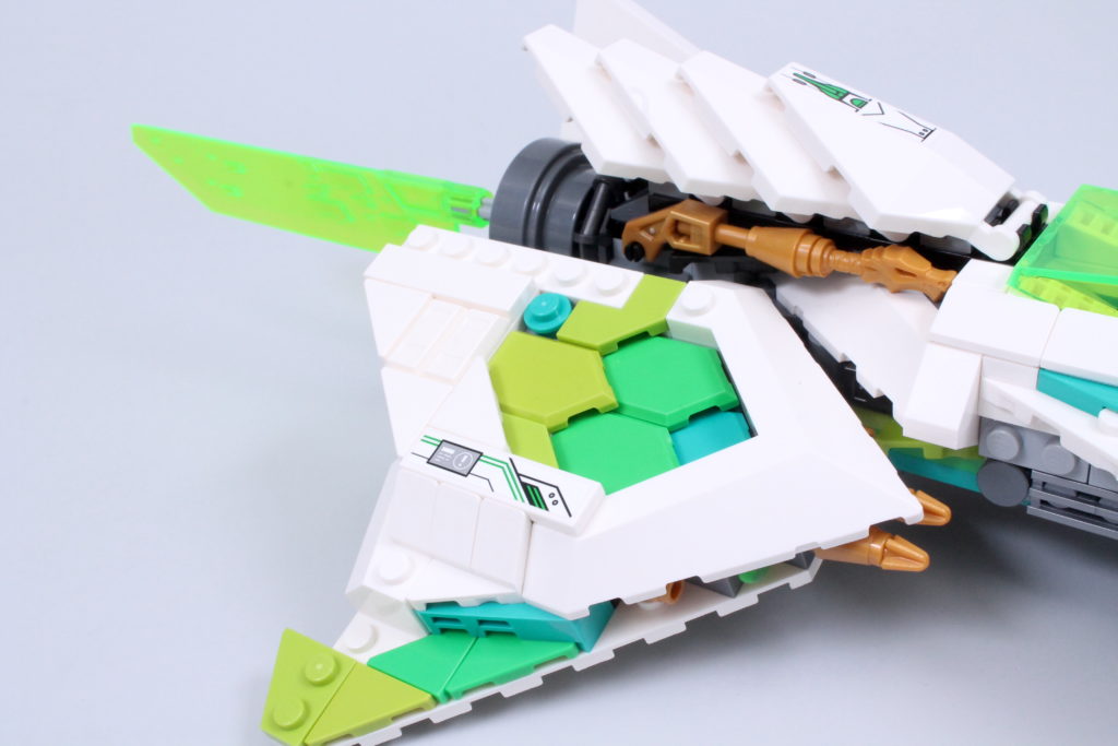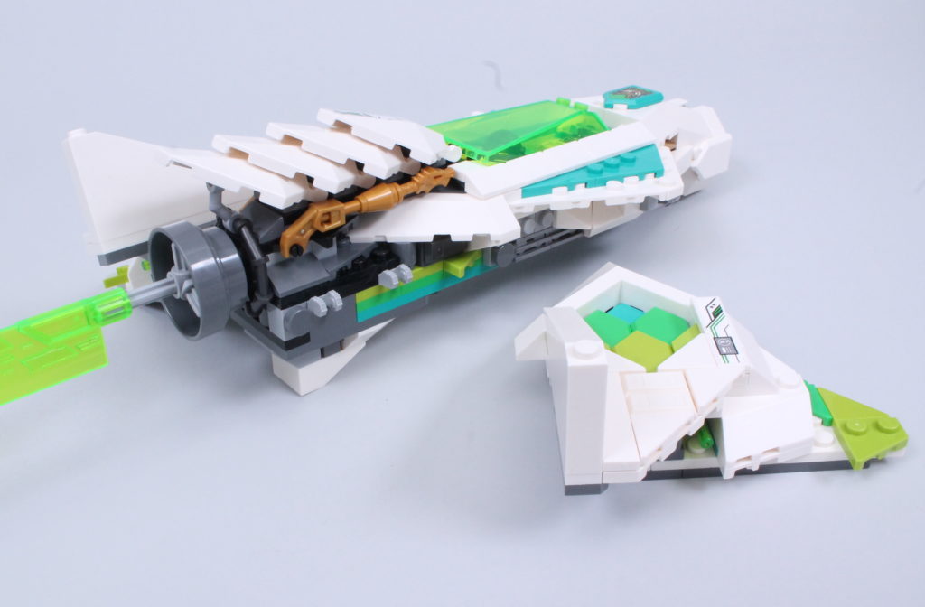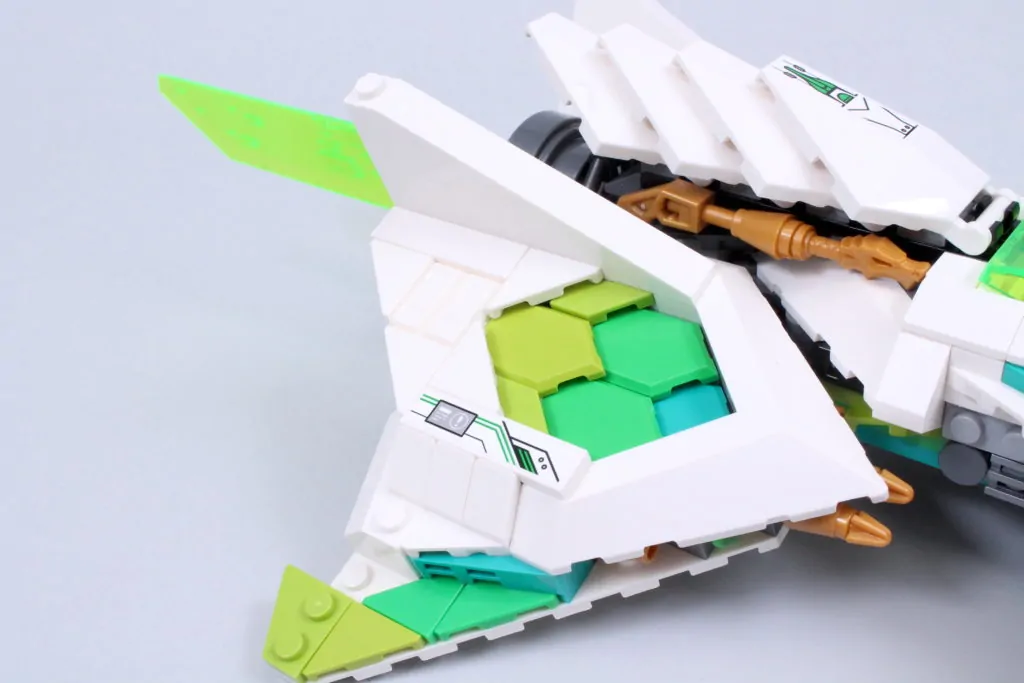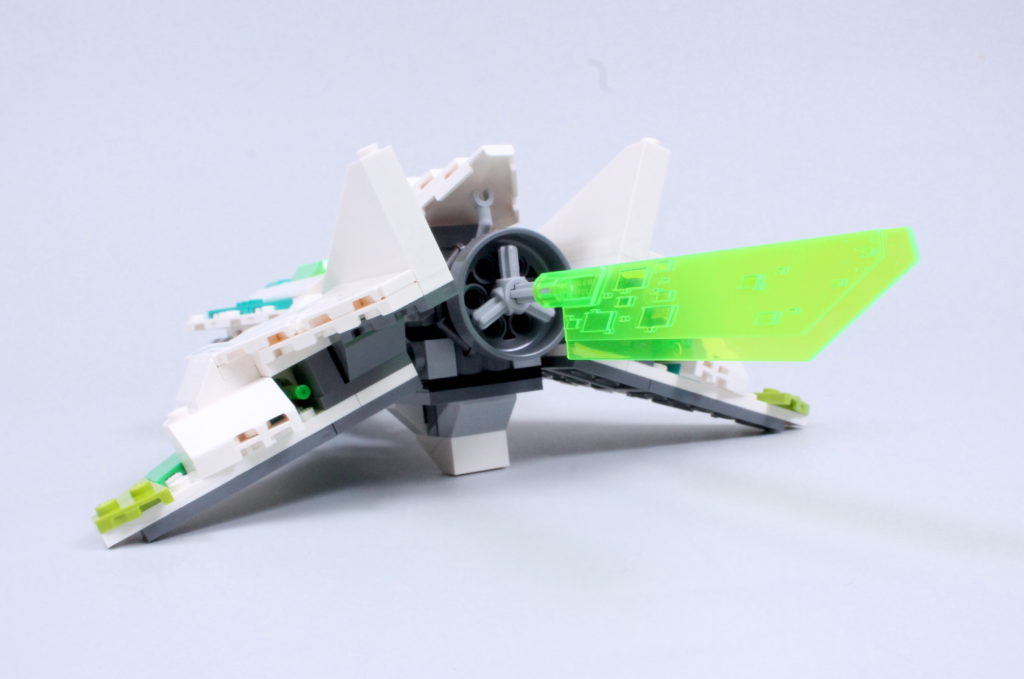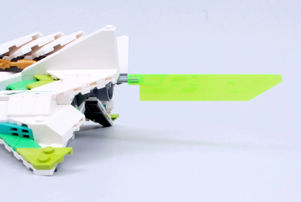 Vi siger næsten, for det er en fornøjelse at sammensætte Meis tur. Det er ikke kun gennem de involverede teknikker – selvom der er et par derinde, der kan tilføje en ny streng til din byggebue, inklusive næsen, der forankrer ryg-mod-ryg underenheder med en aksel og clips, og vingerne, der skjuler 2×2 hjørnefliser med 45-graders udskæringer som femkantede fliser – men på grund af de slående farver, du kan lege med, og den måde, de så glimrende kombinerer med den smarte, kantede karakter af skibsdelpaletten for at skabe en model, der er lige så bemærkelsesværdig at se på, som den er at samle.