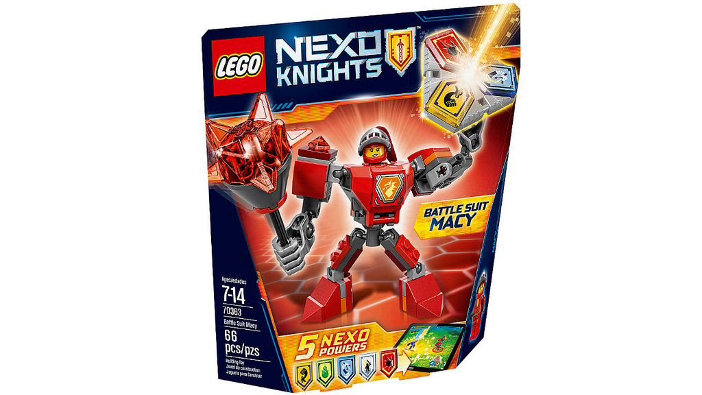Efter opdagelsen af LEGO NEXO KNIGHTS 2017 sæt billeder, fem nye Battle Suit-sæt, der vil erstatte Ultimate Knights-serien. Hver pakke indeholder en bygbar version af Clay, Macy, Aaron Axl eller Lance, der ser ud til at bygge en mekanik omkring minifiguren. Hver pakke kommer med den nye tre skjolddel, der gør det muligt at tilslutte fire kræfter - dette forventes at være forbundet med en ny funktion på appen.