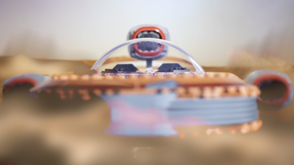 Selvfølgelig var der mere i det end blot at fjerne stativet i Photoshop. Nøjagtige skygger var påkrævet, sand- og støvpartikler blev tilføjet, og hastighedseffekter blev påført speederen og baggrunden for at skabe det indtryk, at speederen skimter hen over det barske ørkenlandskab.