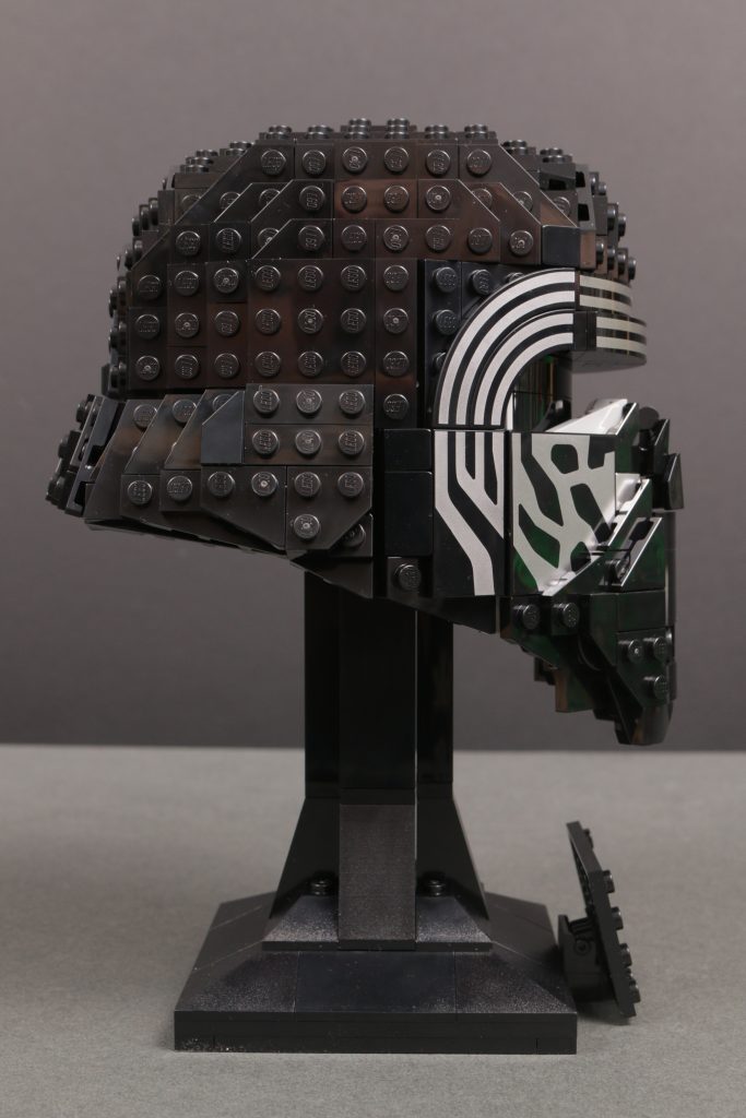 Mens toppen og de øverste dele på bagsiden og siderne af hjelmen er enklere, pladebaserede konstruktioner, er det subtile løft i vinklen omkring den nederste kant meget smart udtænkt med hængsler og bidrager langt mere, end du måske først er klar over, til slutresultatet, som er en helt nøjagtig og autentisk LEGO-version af den efterfølgende ikontrilogis mest ikoniske hjelm.