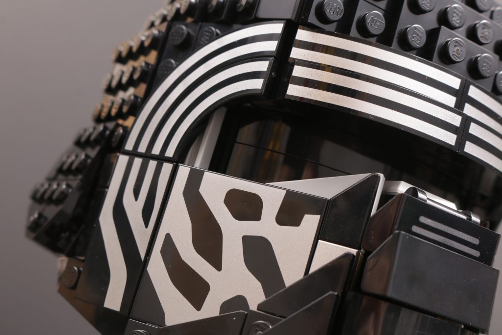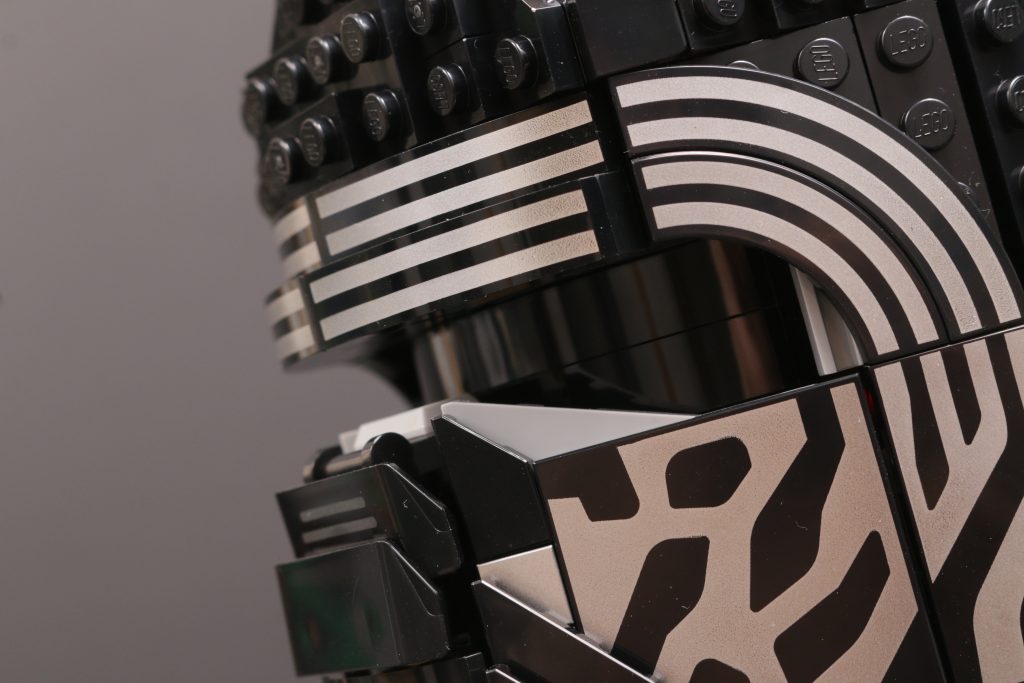 Disse teknikker – også hjulpet af nogle nyere stykker tilføjet til LEGO katalog – gå langt for at opnå en meget troværdig gengivelse af Kylos hovedbeklædning, som vi så det i The Force Awakens. Fra de karakteristiske sølvmærker omkring øjenbryn og kinder til det markante område omkring mundstykket, 75415 Kylo Ren hjelm fanger mange af de vigtige og mere åbenlyse detaljer til masken, som vi håber at se. Endnu bedre, hver dekoration, du ser på disse billeder, er trykt – der er ikke et klistermærke i syne.