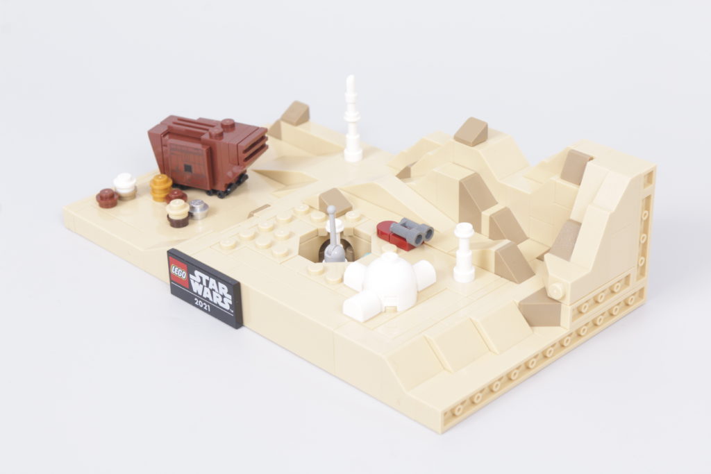 Kombineret med den overjordiske rest af boligen og detaljer såsom mini-sandcrawler med printede sidepaneler (den bedste mikroskala til dato, og en model, som adventskalenderen kan lære meget af), Lukes speeder og 1 ×1 afrundede plader, der repræsenterer Luke, Owen, Beru (i gården), C-3PO, R2-D2 og et par Jawaer, der er en reel fornemmelse af historien fra A New Hopes åbningsakt indfanget i bygningen.