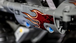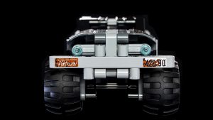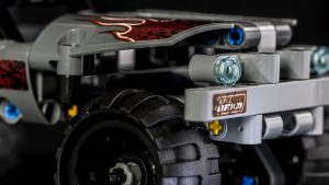 Jeg elsker de store og klumpede hjul, og selvom det måske kommer som en overraskelse for nogle, der har fulgt denne gennemgangsserie, elsker jeg faktisk de medfølgende klistermærker. Flammemærkaterne ser fremragende ud og får 1 × 1 runde transblå forlygter til at sprænge. Jeg elsker også det ekstra touch, som designerne inkluderede i dette sæt ved hjælp af LEGO sæt nummer, 42090, som nummerplade.