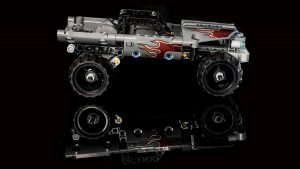 LEGO Technic 42090 flugtbil bruger 128 stykker til at bygge et rødt, sort og gråt 4 × 4 køretøj med flammemærkater, som har en tilbagetrækningsmotorafspilningsfunktion. Sættet kan bygges som en enkeltstående model eller kan kombineres med 42091 Politiefterfølgelse (gennemgået her) til at bygge 'Ultimate 4 × 4 Police Vehicle'.