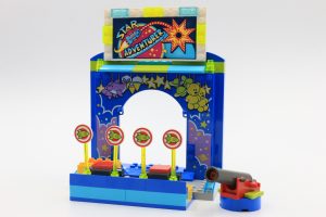 Bygningen eksploderer med et karnevalsskydespil med raket-tema bygget på en 8x16x6 startbundplade for at gøre det nemmere for unge bygherrer. Samlere af dele vil sætte pris på nogle sjældne trans-blå og trans-gule stykker, mens rumskibsmål-skiltene nemt kunne genanvendes andre steder. De fleste detaljer kommer fra en 4x16x10 mursten med en enorm mængde tryk, der viser alle de tilgængelige 'præmier' sammen med en lige så stor reklametavle. Slutresultatet er chokerende farverigt, og så længe du sigter LEGO kanon korrekt, så målene vælter perfekt.