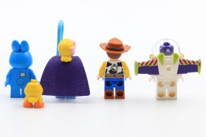 Unikt for dette sæt er den nye duo af Ducky og Bunny, som begge bruger tilpassede forme. De ser meget præcise ud til deres modstykker på skærmen, især med deres store søde øjne. Buzz Lightyear og Bo Peep er tilgængelige i andre sæt, men deres medtagelse i 10770 Buzz & Woody's Carnival Mania! er nyttigt, da fans kan samle det meste af hovedrollen via et enkelt sæt. Woody har stor vestlig stil udskrivning på sin torso sammen med dobbeltstøbte ben til at repræsentere hans cowboy støvler. Ligesom Jessie fra 10769 Toy Story 4 RV ferie (gennemgå), Woody ligner bare ikke et legetøj ved at bruge et typisk minifigurhoved.