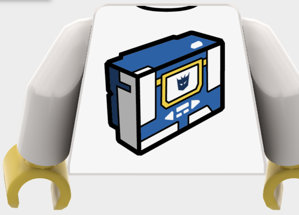 LEGO Gruppens online Minifigure Factory-tjeneste, såvel som udvalgte butikker, der allerede har funktionen, vil kunne trykke Transformers-tema designs på torsoer, samt to prædesignede torsoer. Den første er en med Soundwave-tema, med 'More than meets the eye' trykt på forsiden og Soundwave i hans kassetteafspillerform på bagsiden.