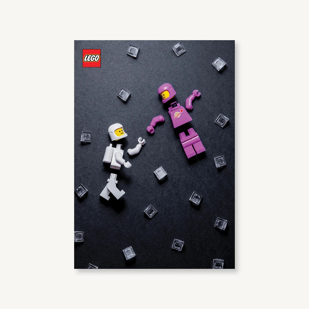 En ny notesbog er på vej med to Space-minifigurer i sortens rum.