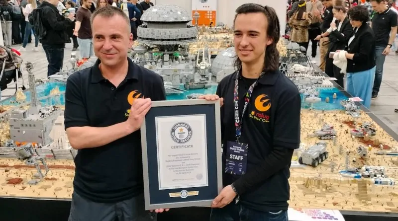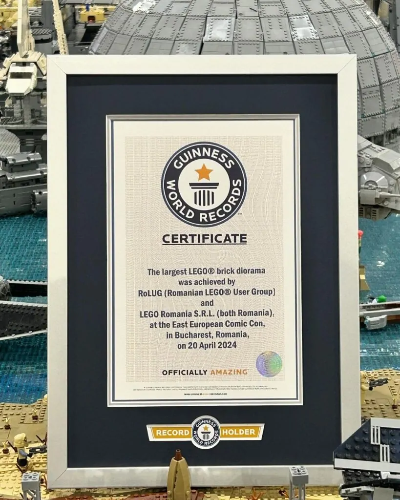 Tre års arbejde har ført til den længe ventede fremvisning af den største LEGO Star Wars diorama nogensinde, som anerkendt af Guinness World Book of Records ved East European Comic Con 2024 i Rumænien. Et hold på 26 rumænske LEGO bygherrer fra RoLUG (LEGO User Group fra Rumænien) deltog i byggeriet, ledet af fader-søn-duoen af bygherrer, Bence og Botond Czilli, som deler deres arbejde på Instagram som bens_builds_. For at gøre det til en sand fællesskabsindsats blev de sidste par klodser placeret af besøgende til begivenheden, hvor hver person tilføjede en enkelt brik til den enorme bygning.