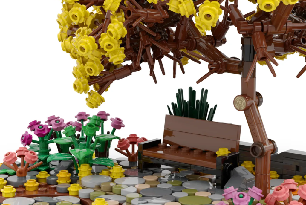 Gyldent trompettræ med parkbænk genskaber det brasilianske træ af samme navn i en parkscene. Ved første øjekast er det en smuk, men ligetil konstruktion sammenlignet med de andre indsendelser i den anden 2022-gennemgang. Dette projekt er dog personligt for Lambert. Beskrivelsen bemærker, at træet var en del af et spil fra deres barndom, og denne model fungerer som en hyldest til disse gode minder.