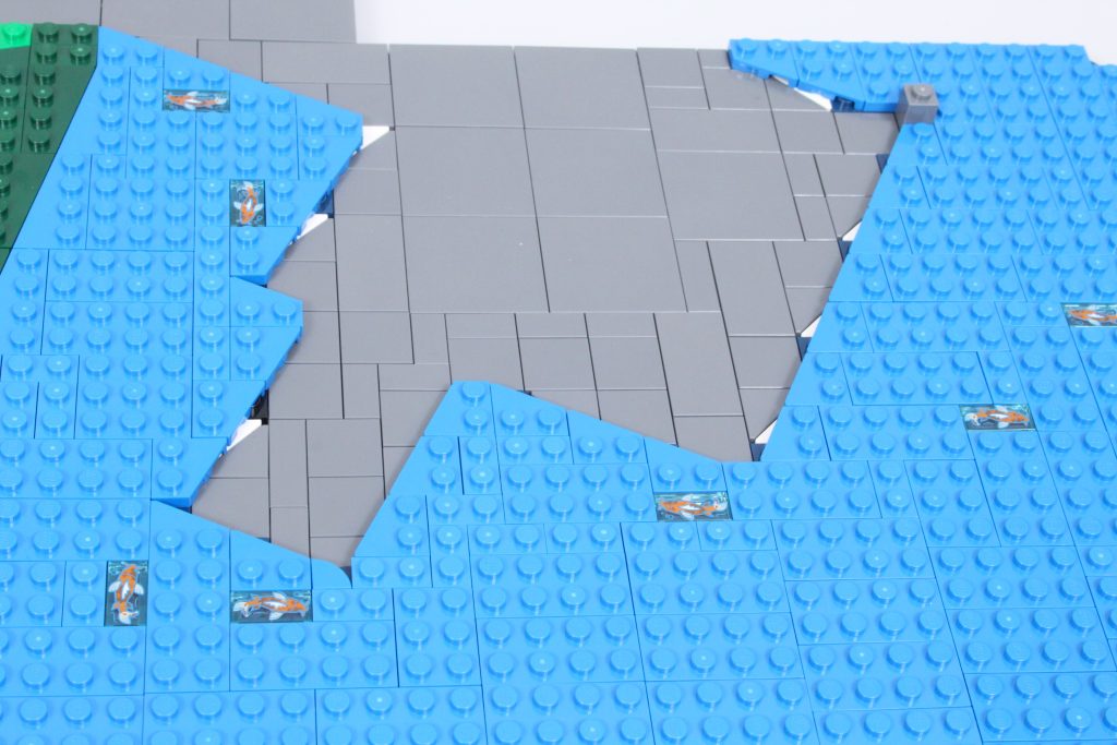 At skjule nogle få af de gennemsigtige printede fiskefliser (og ignorere det faktum, at de er Koi-fisk og ikke saltvandsfisk) kan hjælpe med at simulere undervandsvæsner, ideelt placeret i hele vandet, men især ved en mole, hvor en fisker er på jagt efter sit næste måltid.