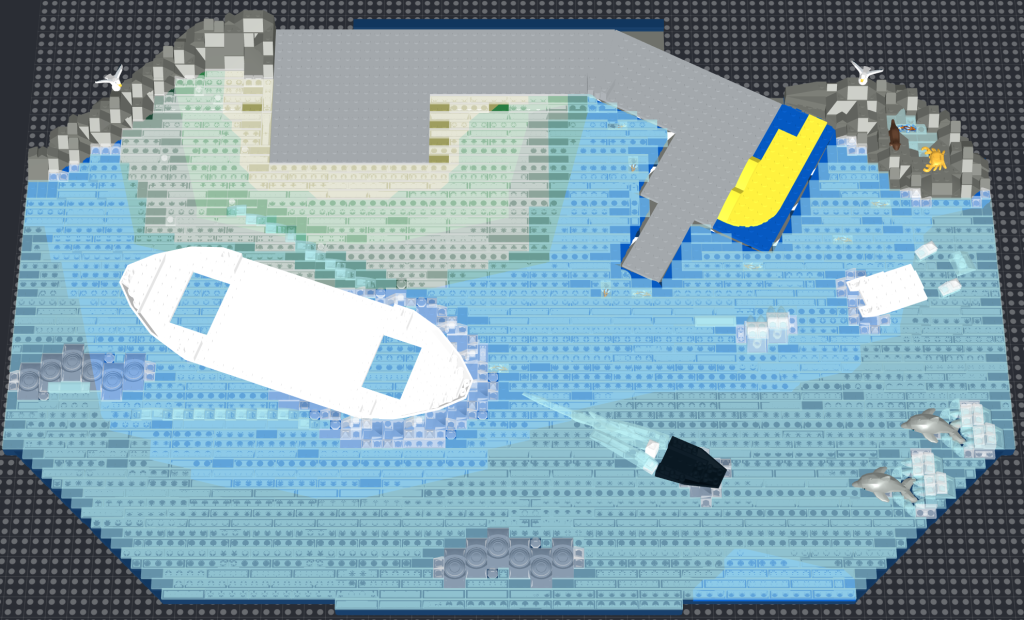 Bølger, kyster og mere som afbildet af AFOL butik var særligt bemærkelsesværdige for havneudstillingen, og skibets vågne fra Pelle1001s skabelse inspirerede os også.