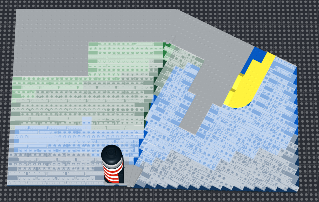 Ved at skabe et omfattende layout af den officielle model kan du se, hvordan du kan forme resten af bygningen omkring LEGO-sættet, endda inkorporere et område, hvor du nemt kan sætte modellen ind og ud af bygningen, i stedet for at den er permanent fastgjort. Dette ender med at være særligt nyttigt til det næste punkt.