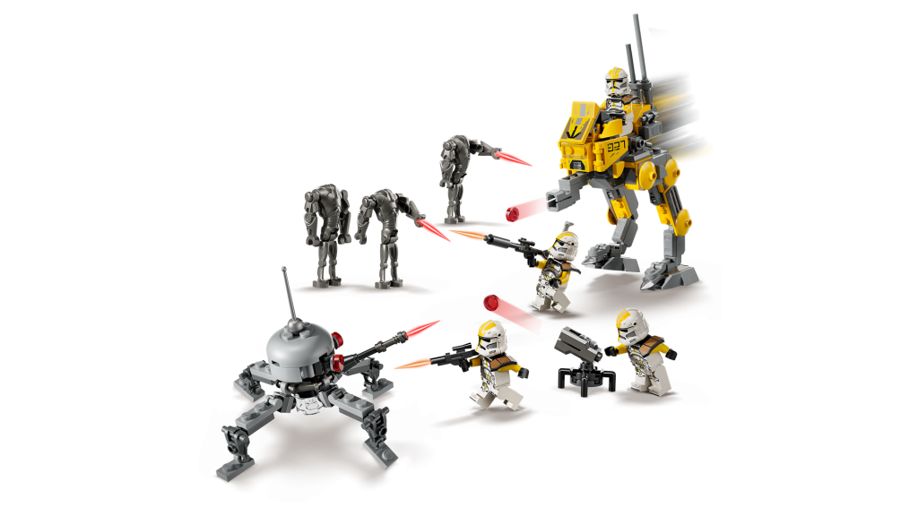 Den seneste LEGO Star Wars Kamppakken 75431 327th Star Corps Clone Troopers ser soldaterne møde Super Battle Droids i Revenge of the Sith-æraen. Den indeholder fire LEGO Star Wars minifigurer af klonsoldater i uniformer fra 327. Star Corps og tre LEGO-figurer af Super Battle Droid. For at fuldende scenen er der LEGO-sættet med 258 dele. Star Wars Sættet indeholder også en bygbar AT-RT-roller med et cockpit, der er stort nok til én minifigur, en knopskyder og opbevaringsplads til tilbehør, samt et knopskydertårn til klonsoldater, mens superkampdroiderne har en edderkoppedroide.